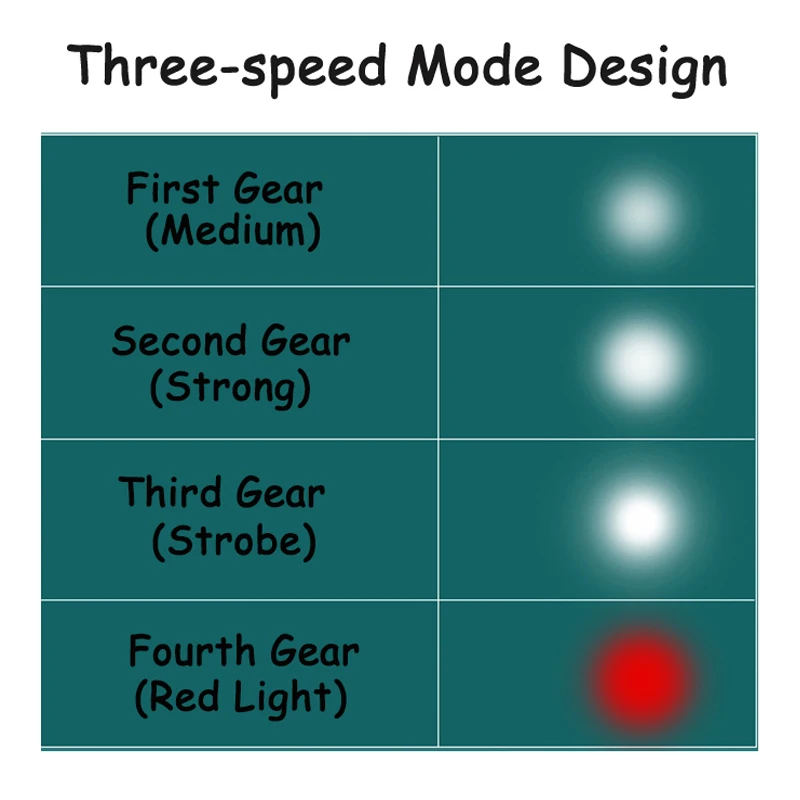 Вы можете вручную настроить светильник ing интенсивность товар в соответствии с вашими потребностями, с четыре варианта средней светильник, светильник, яркая вспышка красно-светильник. Он может быть применен к нескольким сценариям, таким как ночной бег, кемпинг, чтение, ремонт предметов и т. д.