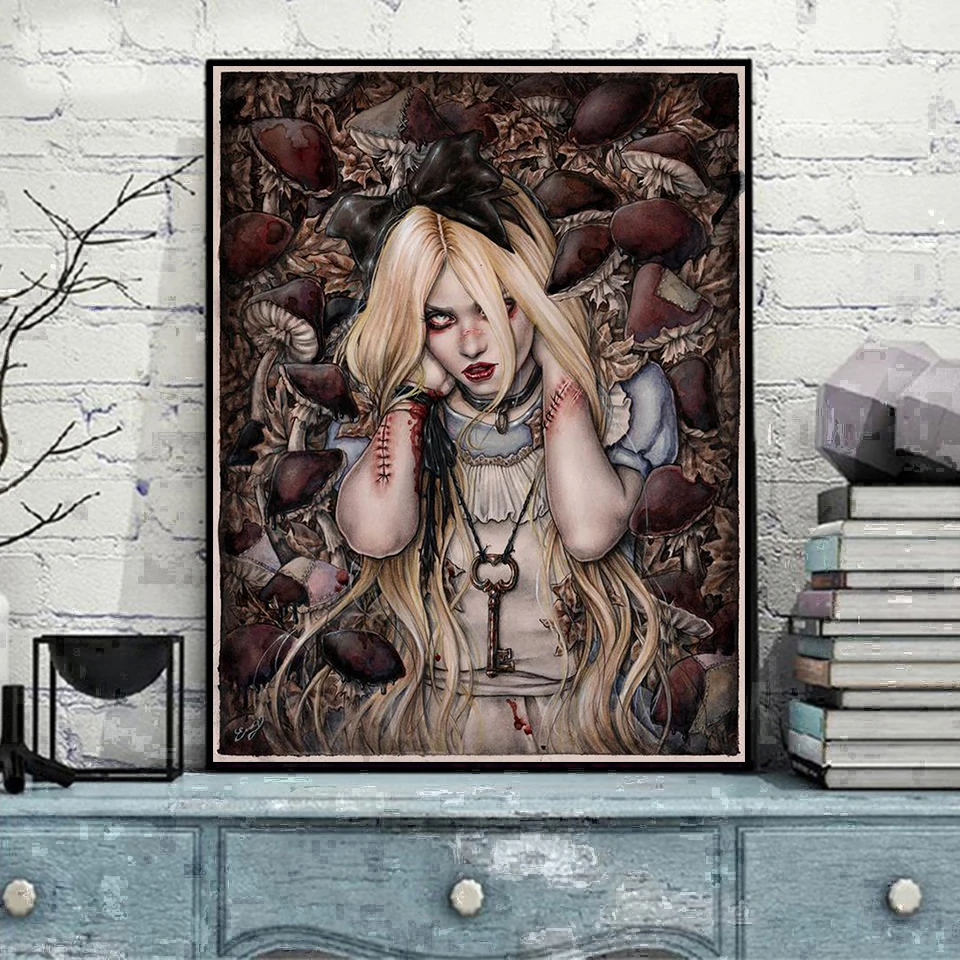 Алмазная 5D картина сделай сам, ужасная девушка, Алиса, полная вышивка, вышивка крестиком, мозаика, Наборы для творчества, домашний декор, подарок на Хэллоуин