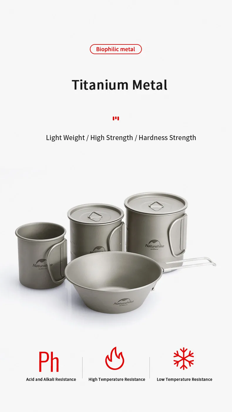 Туристическая титановая чашка Naturehike, Складная портативная Титановая посуда, чашка для пикника, 1 шт., 200 м, 300 м, 450 мл