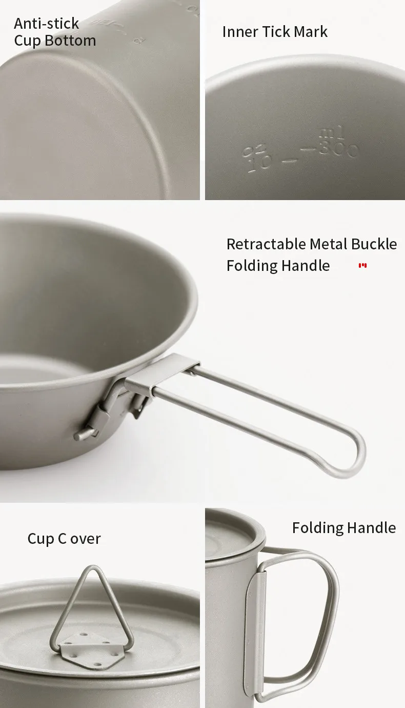 Стиль: титановая чашка 200 мл (без крышки)/титановая чашка 300 мл (с крышкой)/