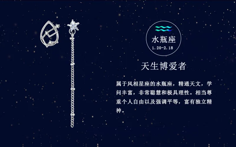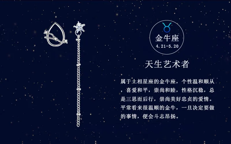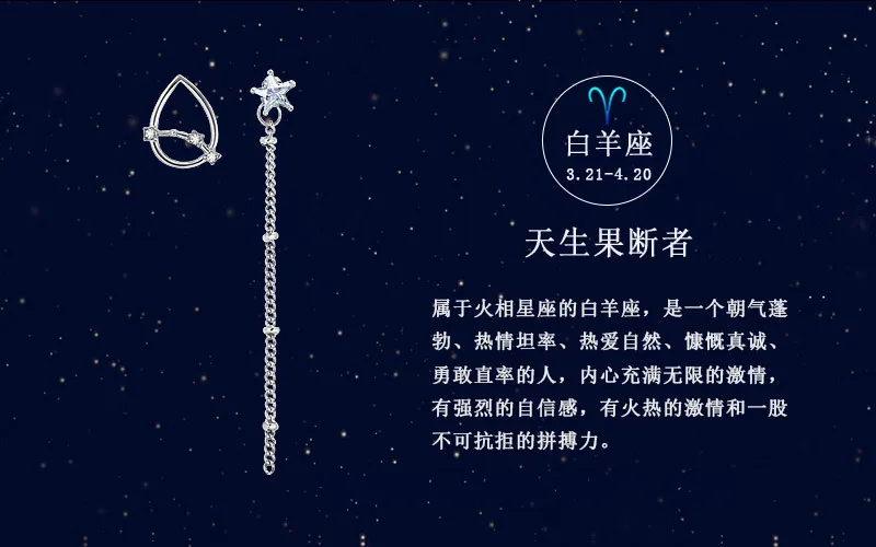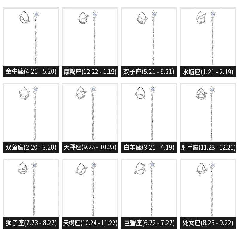 Любовь 12 созвездий серьги звездных Знак зодиака длинной кисточкой серьги модные маленькие аксессуары, сумки из натуральной кожи Leo весы Овен Bronics