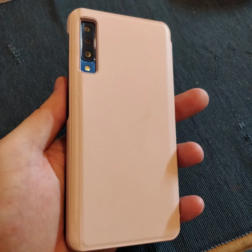 Чехол samsung S7 2018. Соответствует фото и описанию. Доп функционал после установки приложения по QR коду (вкл-выкл экрана по крышке, отображение времени в окошке чехла, при закрытой крышке ответить на звонок нельзя). Качество хорошее без лишнего запаха. Товар и продавца рекомендую.