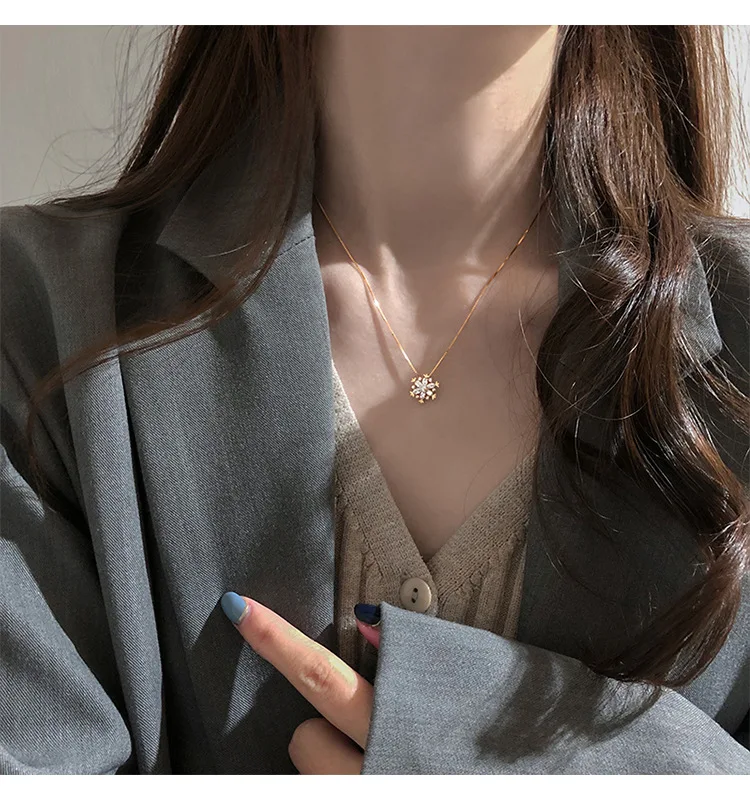 Очарование кубического циркония, цинковый сплав, снежинка, рождественские украшения кулон ожерелье модная цепочка с кулоном из розового золота Цвет снег ожерелье для женщин