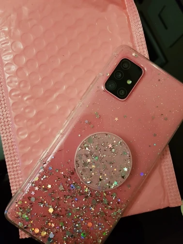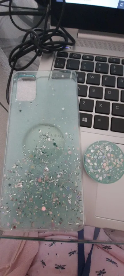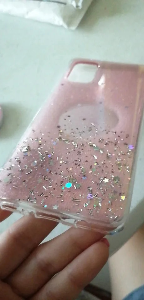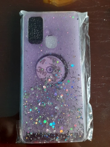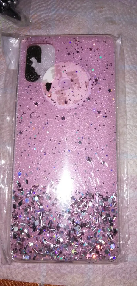 Прозрачный силиконовый чехол для Samsung A21s очень красивый с блестящим посеребренным покрытием, который придает красивый свет. Попсокет включает в себя качество с причудливыми блестками, такими же, как и покрытие. Отличный продукт.