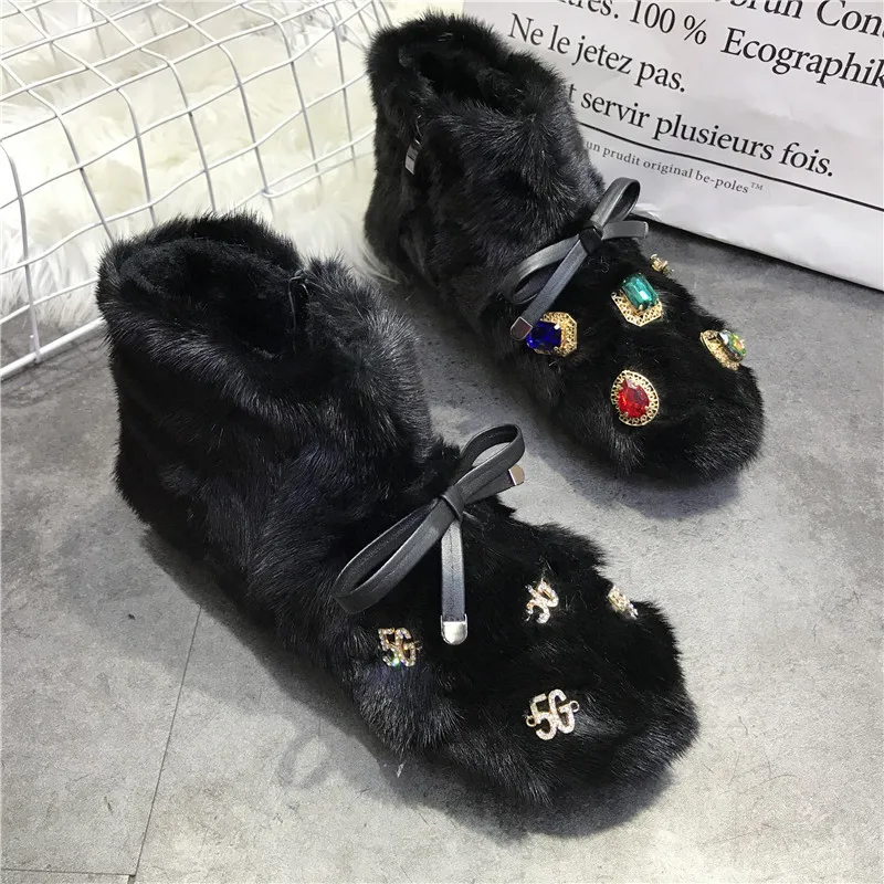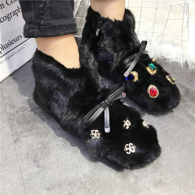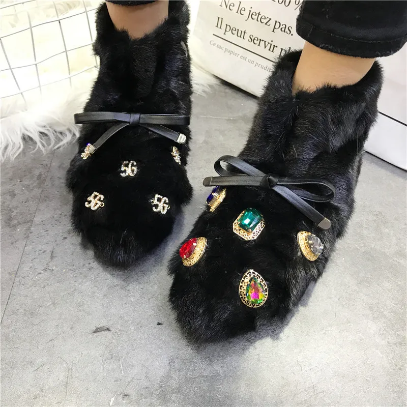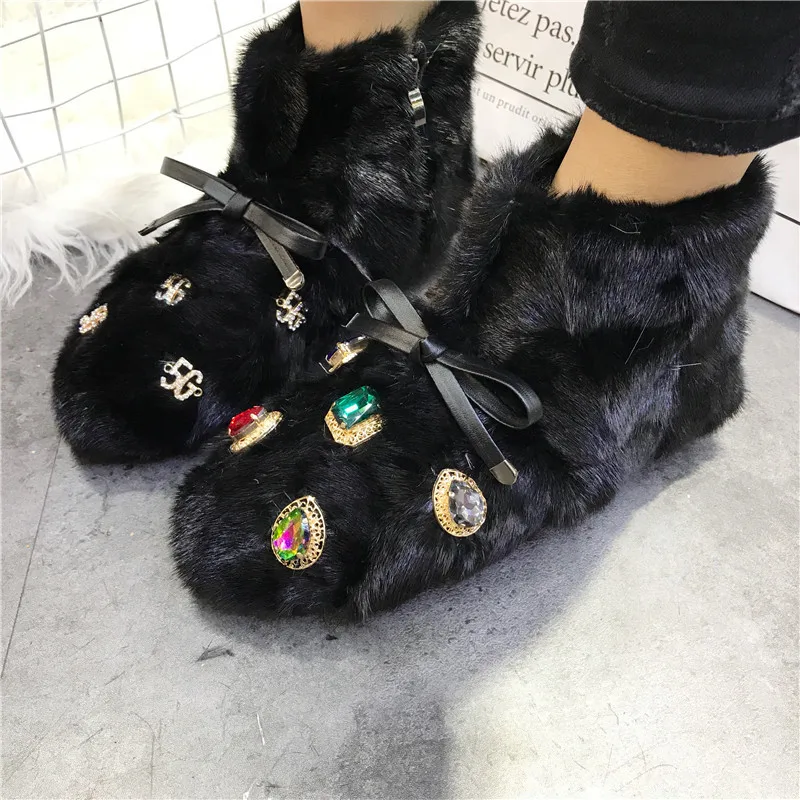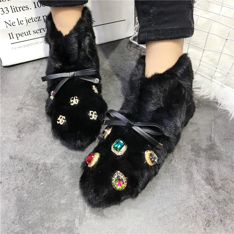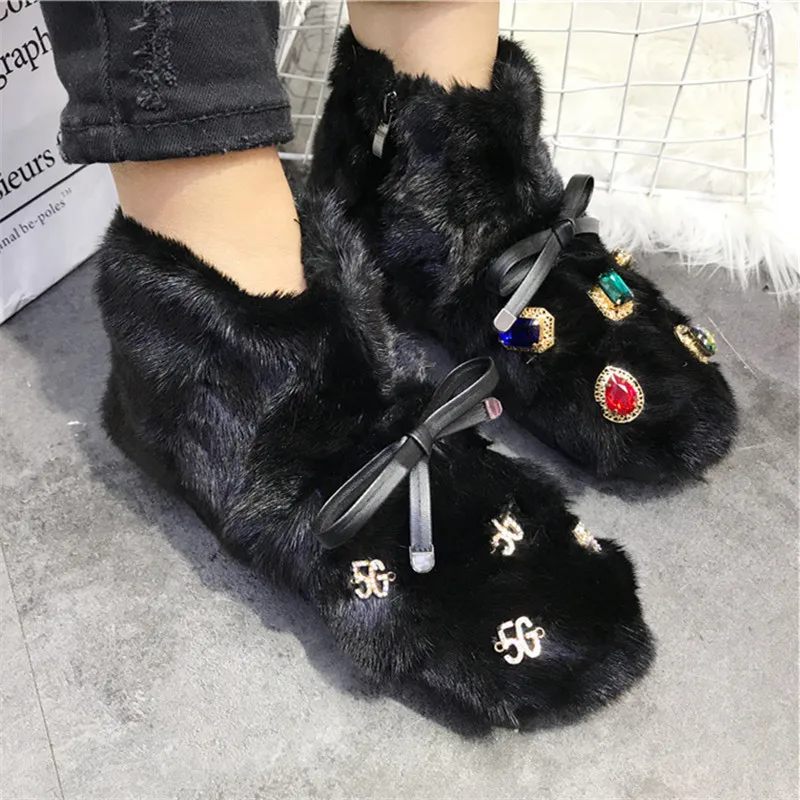 Женские зимние теплые меховые ботинки со стразами, повседневные ботильоны на платформе и толстой подошве, женские зимние ботинки