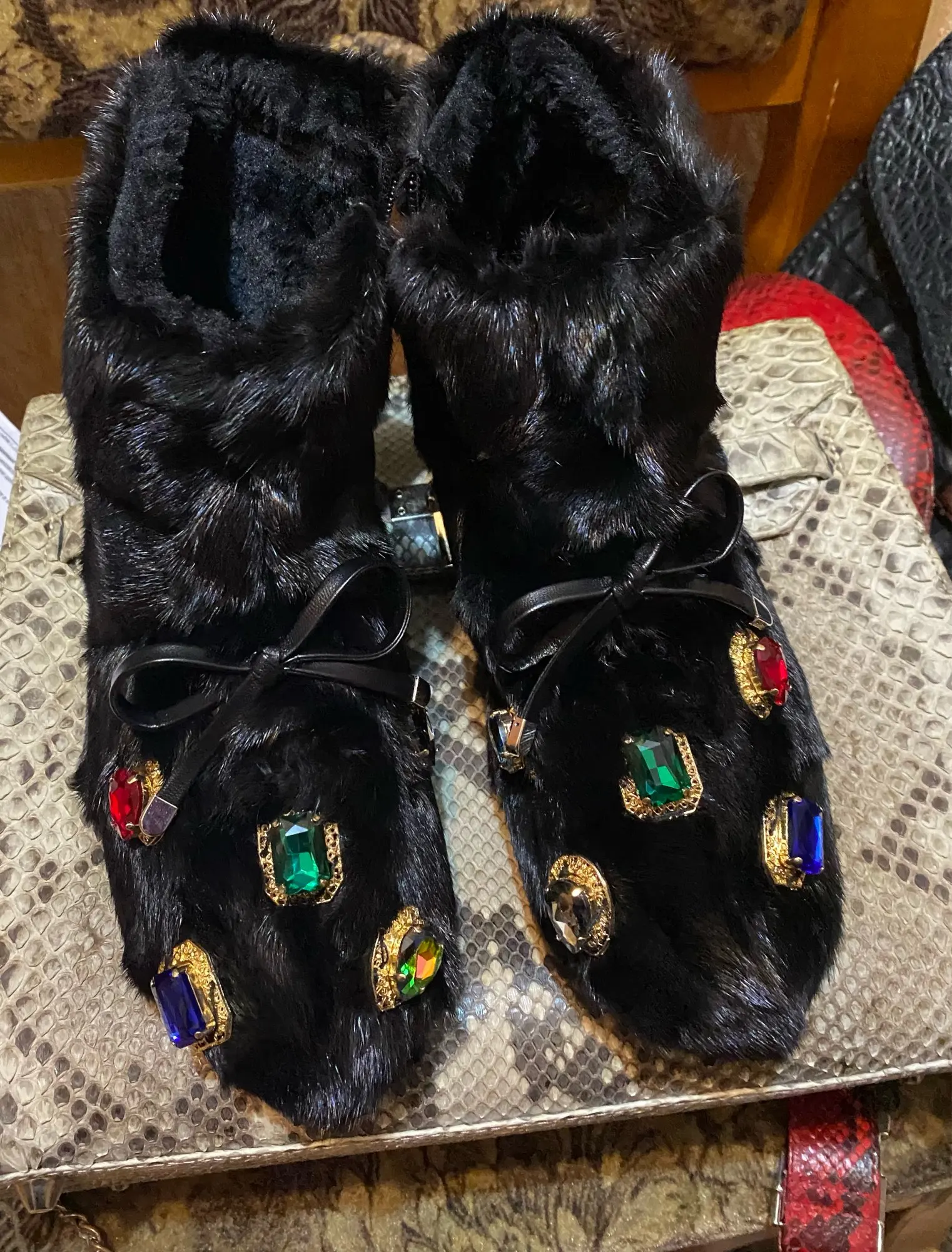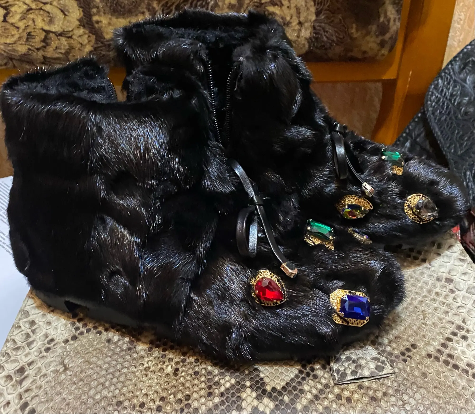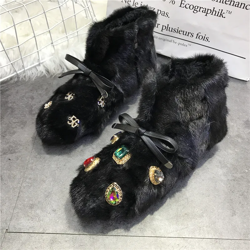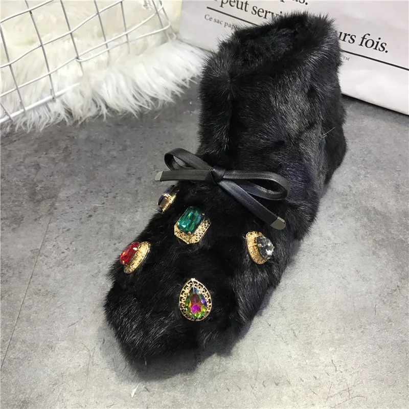 Женские зимние теплые меховые ботинки со стразами, повседневные ботильоны на платформе и толстой подошве, женские зимние ботинки