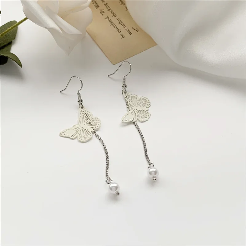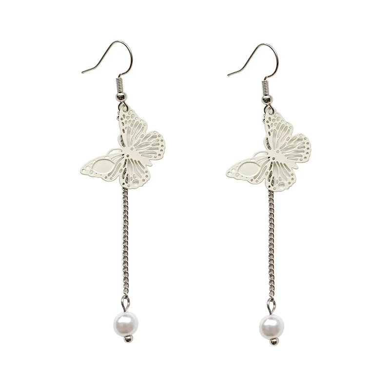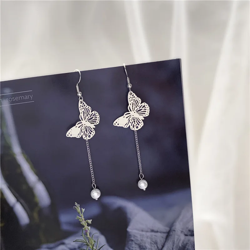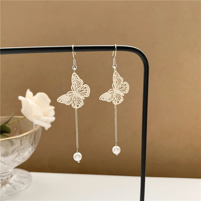 Романтичные элегантные металлические серьги-гвоздики с бабочкой и ж...