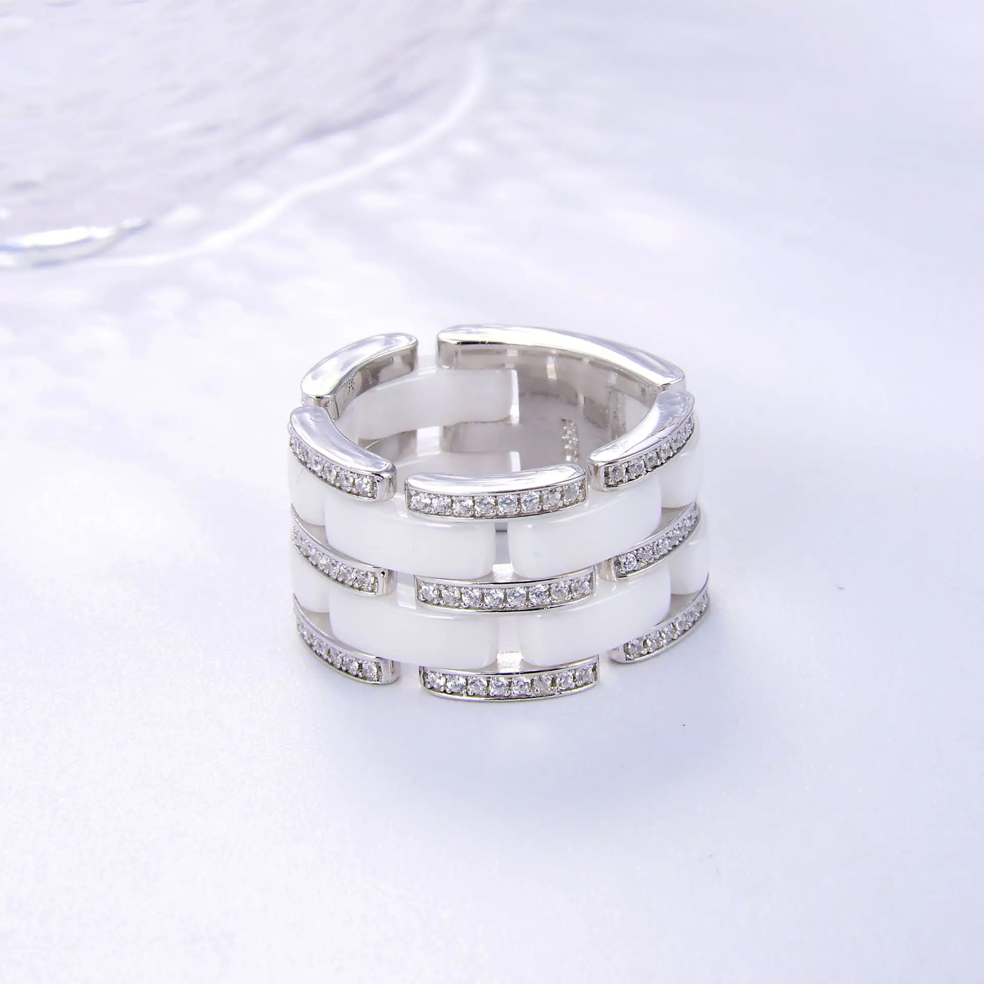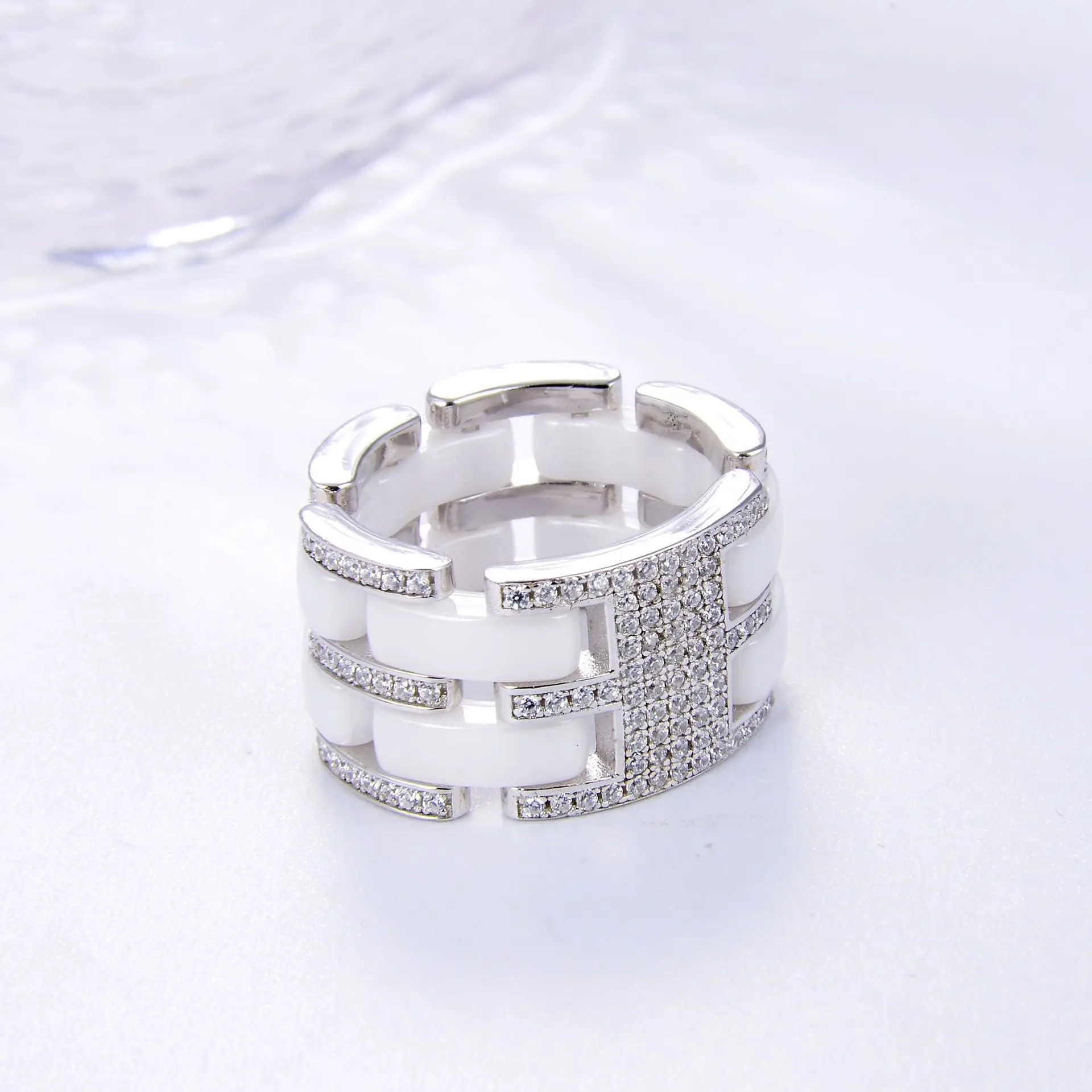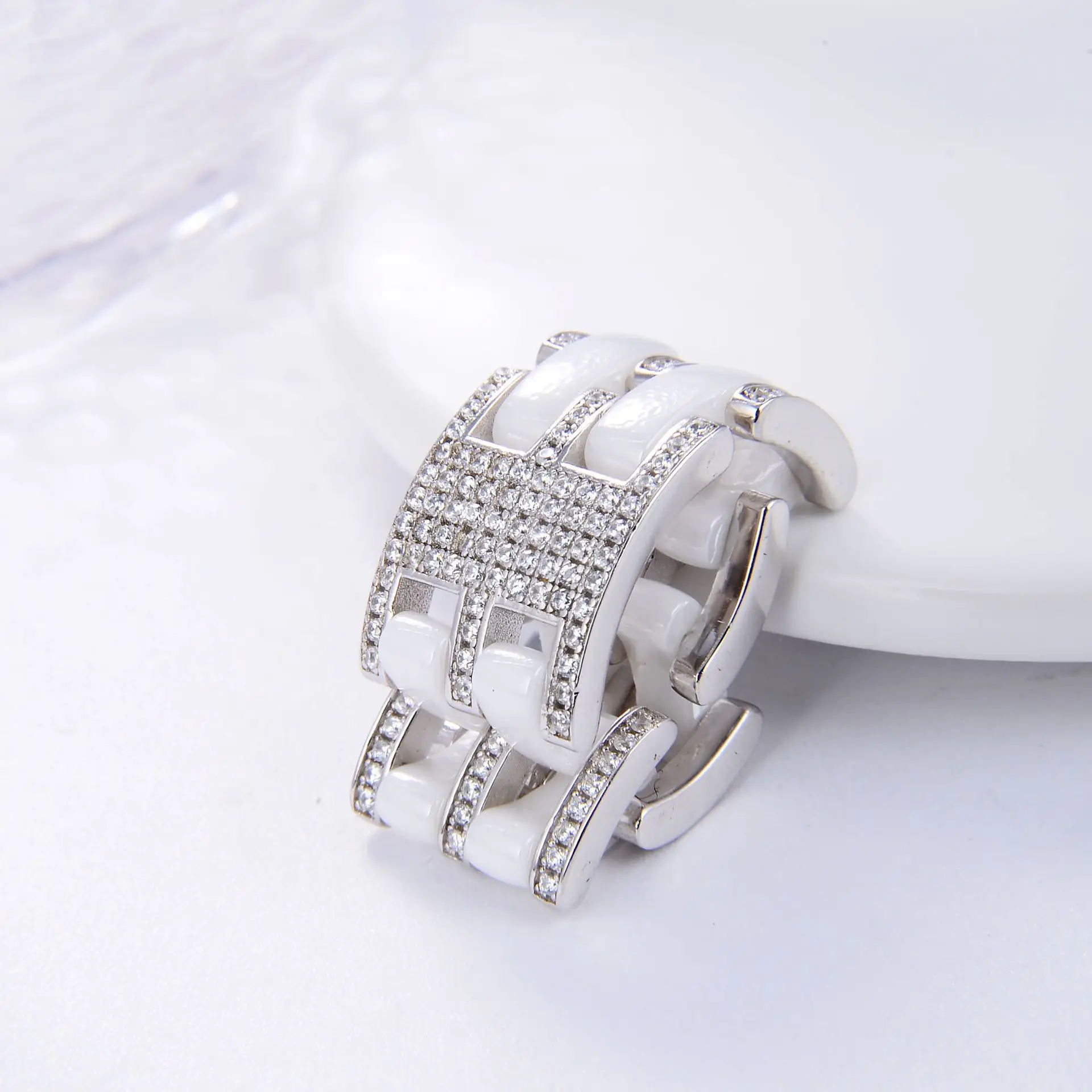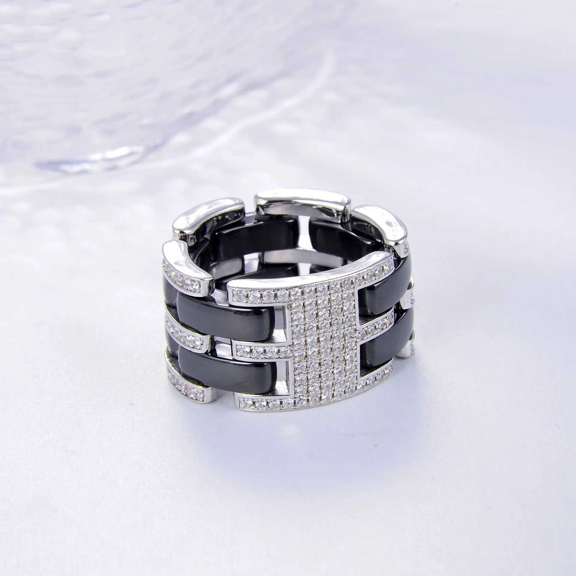 S925 серебро точность керамическая цепь кольцо Мода инкрустированное Цирконом кольцо для мужчин и женщин