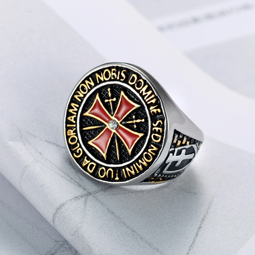 CFBulongs Красный Крест медаль Для мужчин, кольцо, кольцо из нержавеющей стали в стиле ретро Нержавеющаясталь властная храмовник ювелирные изделия обручальное кольцо