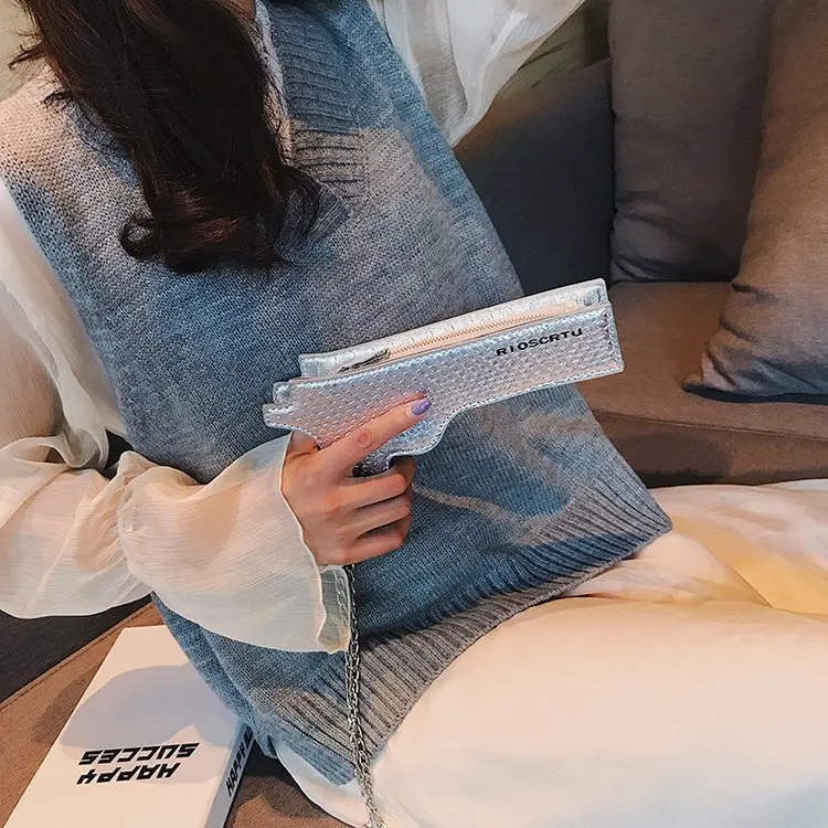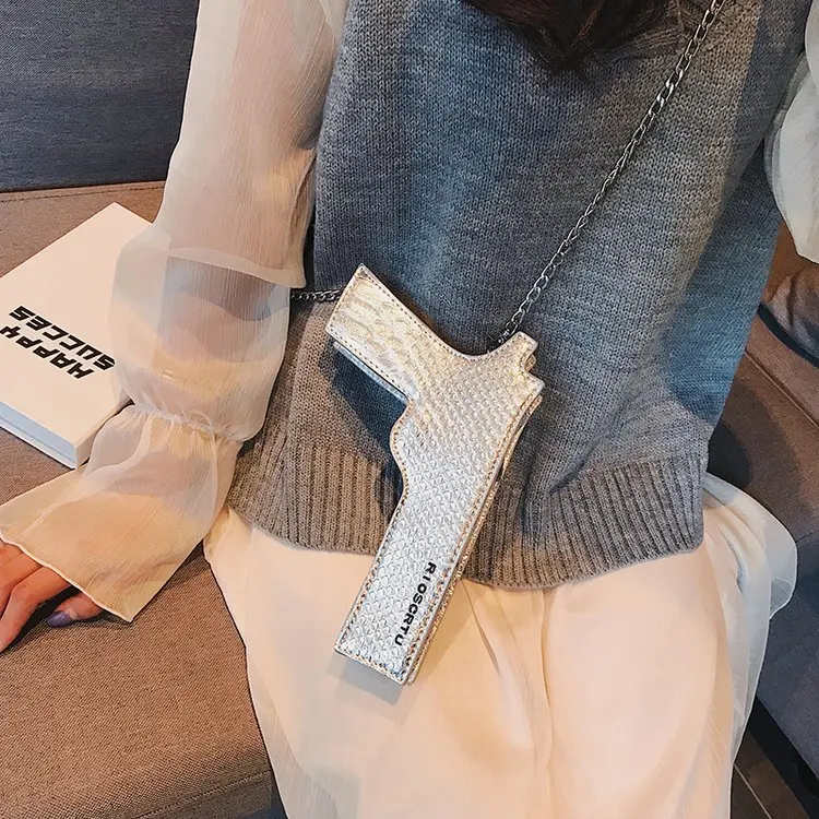 Новая брендовая дизайнерская забавная сумка-мессенджер с пистолетом, крутая индивидуальная Детская сумка через плечо с цепочкой, Маленькая женская сумка, кошелек