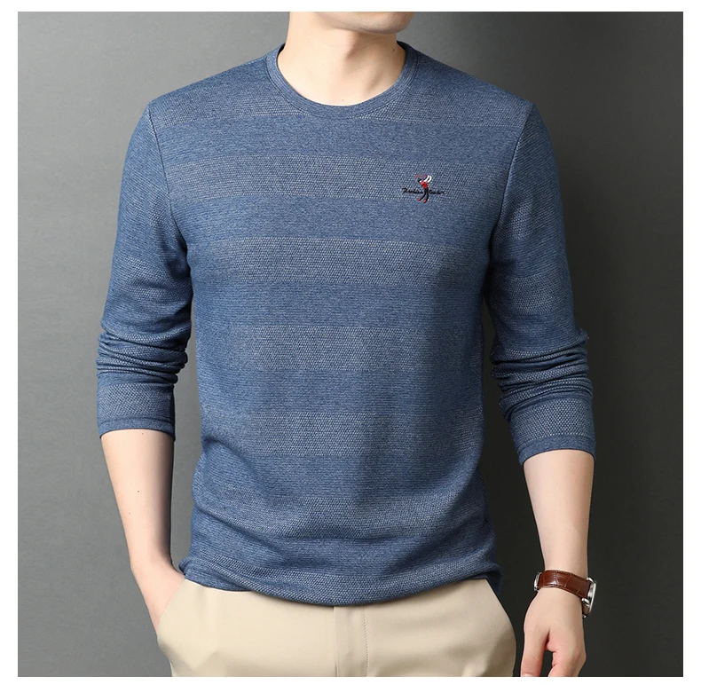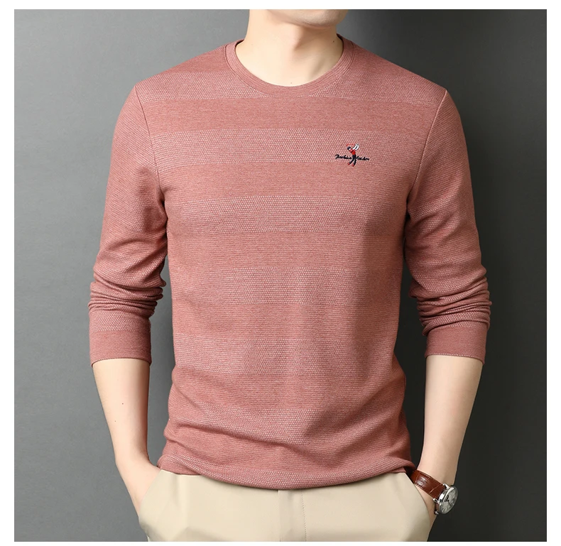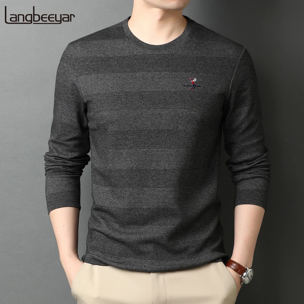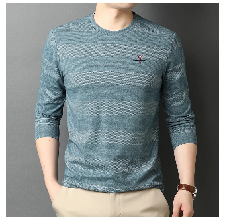 Высший сорт 2022 новый модный бренд Тяжелая полосатая Мужская облегающая футболка с длинным рукавом с круглым вырезом с длинным рукавом мужские топы повседневная мужская одежда