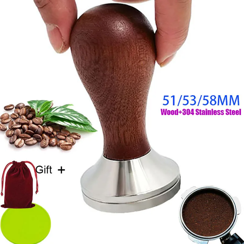 Темпер для кофе с основанием из нержавеющей стали 304 и ручкой из массива дерева, 515358 мм