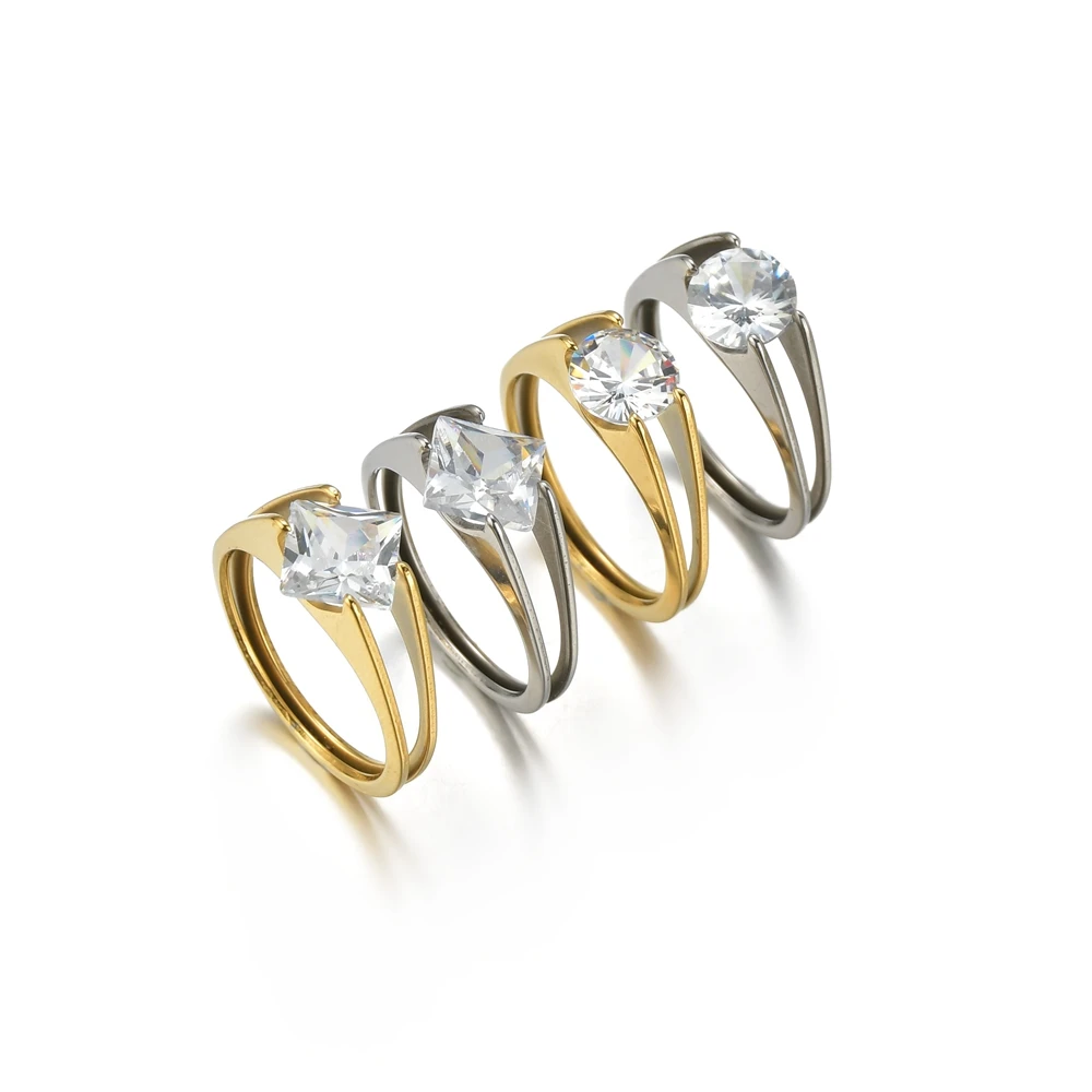 1. Наименование:Женское квадратное/круглое кольцо из прозрачного кристалла CZ, винтажное Женское Обручальное кольцо из нержавеющей стали, модное обручальное кольцо