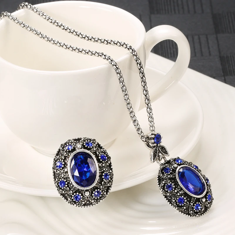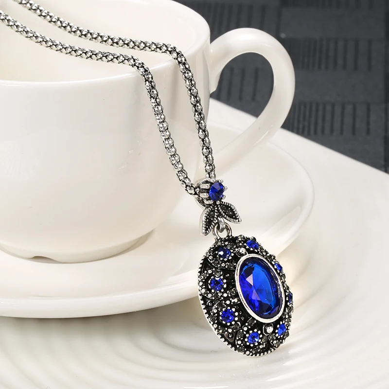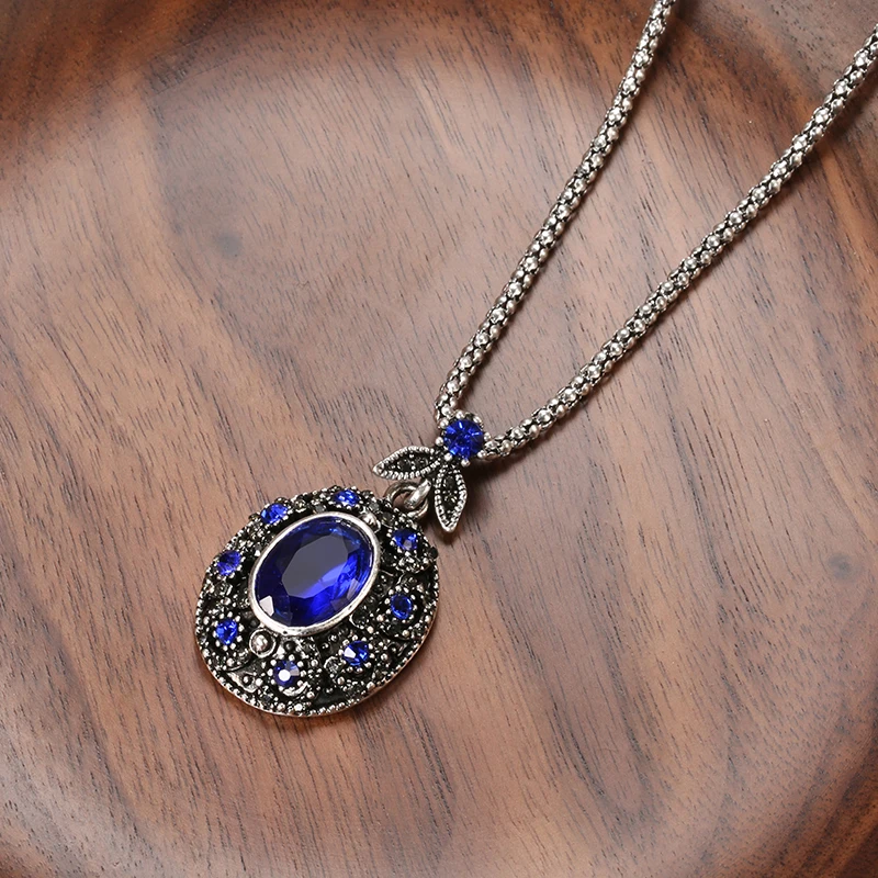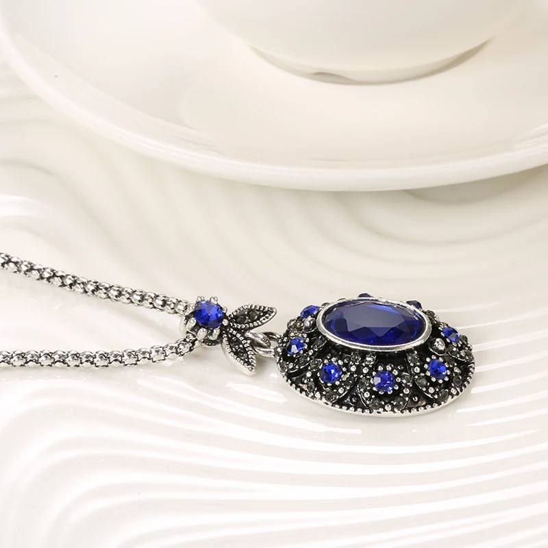 Kinel Бохо тибетский серебряный синий кулон ожерелье для женщин Этническая Невеста свадьба Винтажные Украшения Аксессуары для вечеринок кристалл подарок