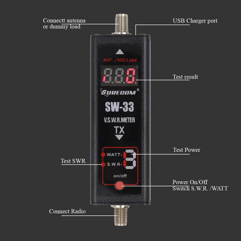 Портативный тестер SURECOM SW-33 Mini Power SWR Meter VHFUHF 100 МГц-520 МГц для любительской двусторонней радиосвязи SW33
