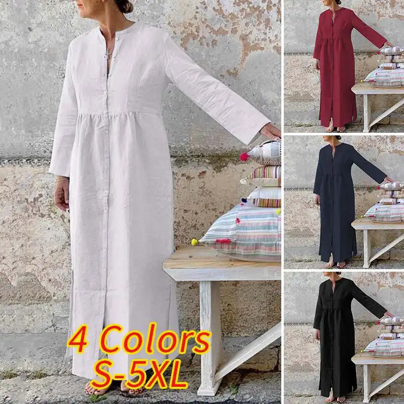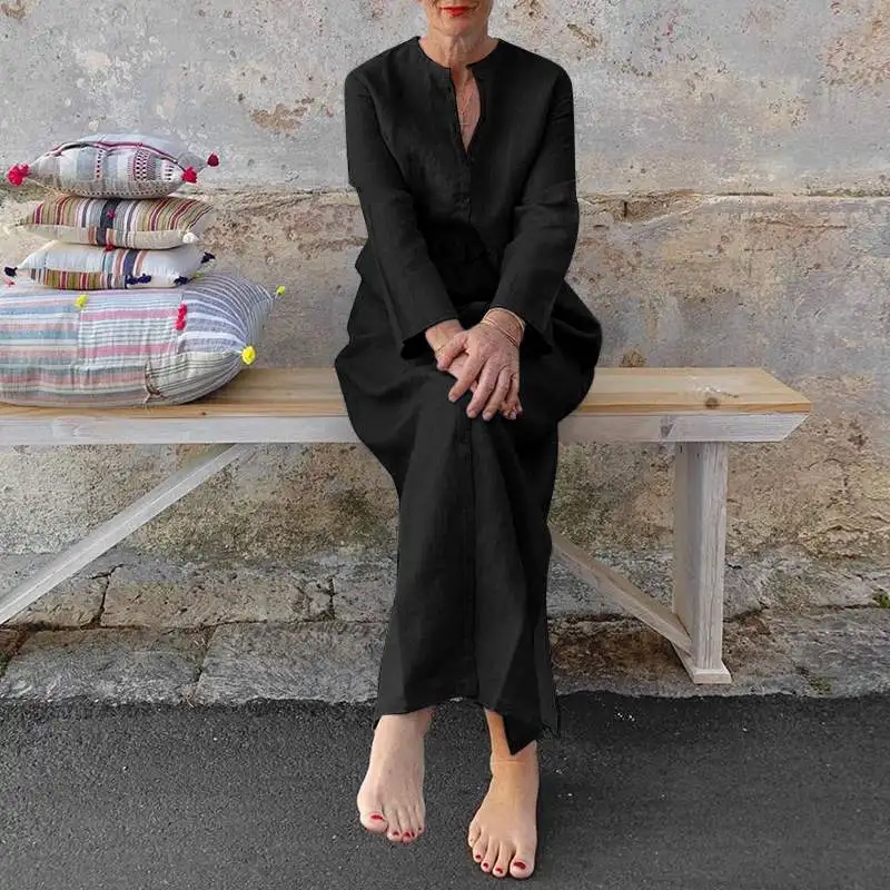Длинное женское платье-макси S- Solid, повседневный мешковатый сара...