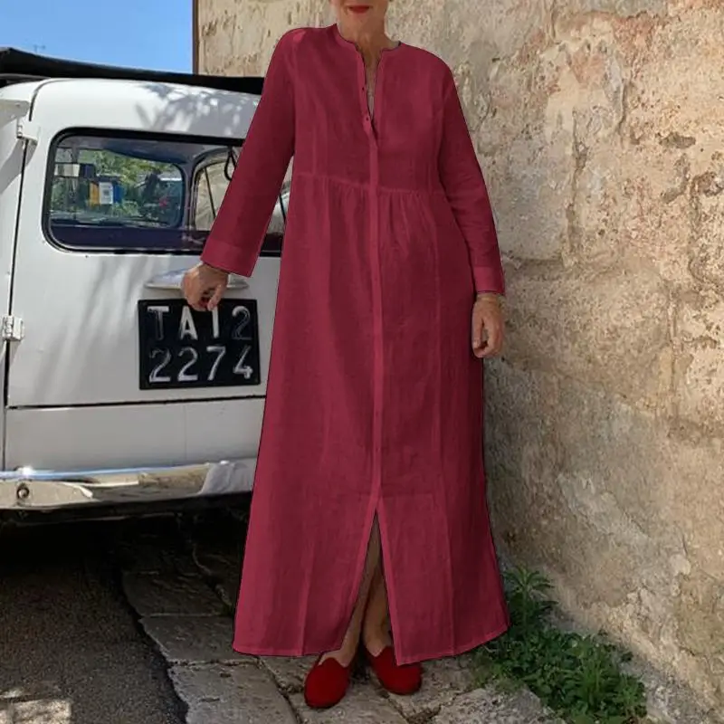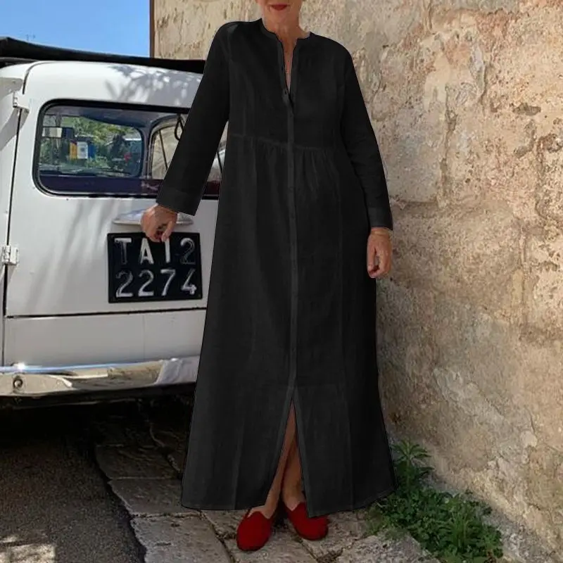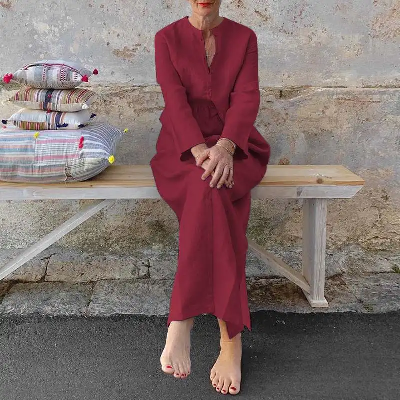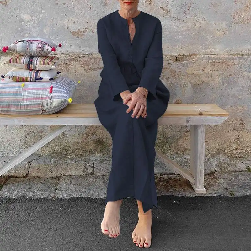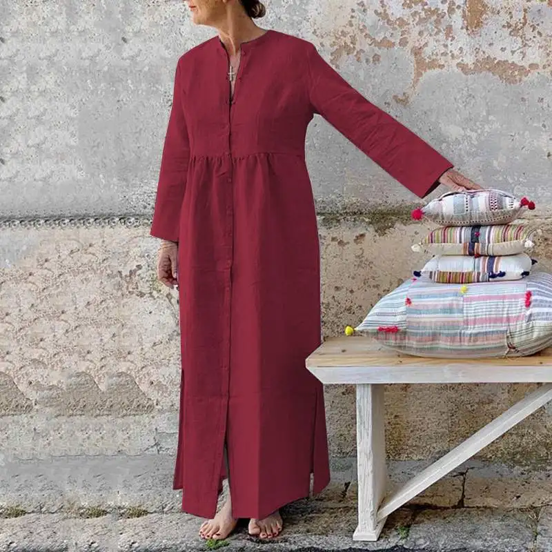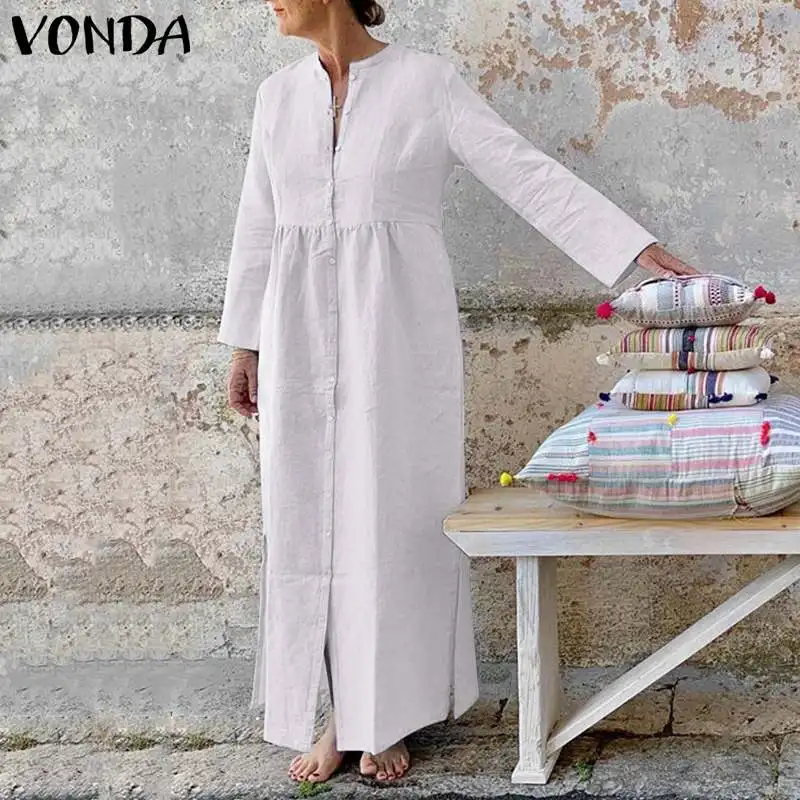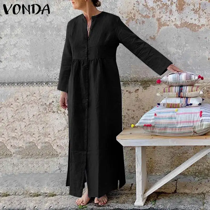Женский Повседневный Сарафан VONDA, винтажный вечерние нный сарафан с длинным рукавом и Боковым Разрезом, праздничный женский сарафан, 2021