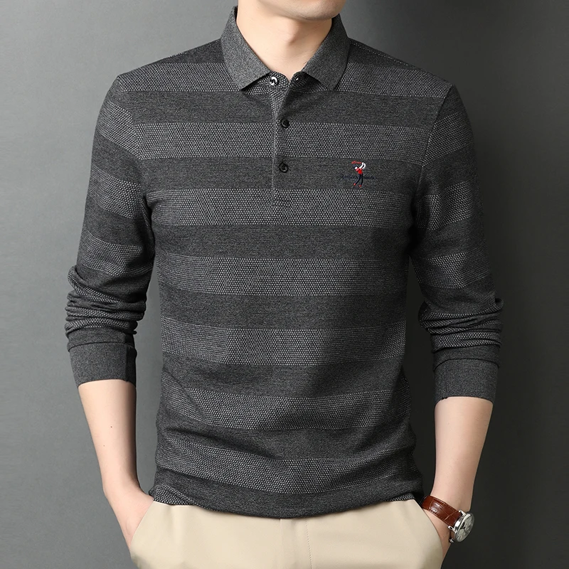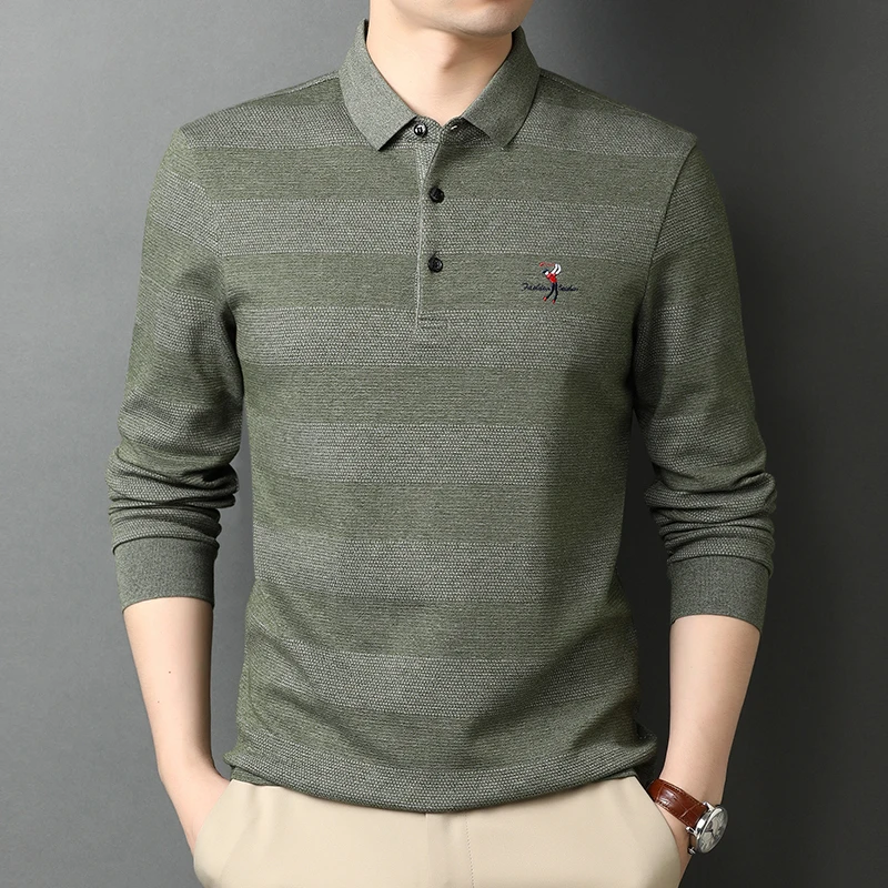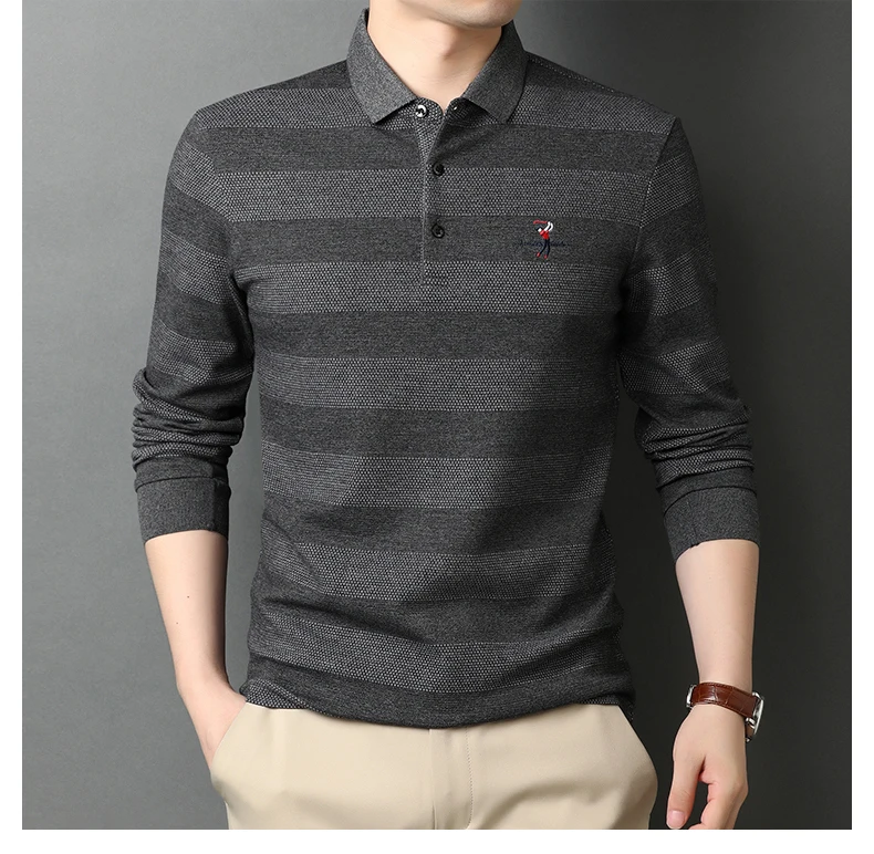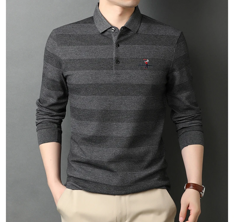 2021 Высококачественная Новая модная брендовая полосатая дизайнерская вышивка, Повседневная рубашка поло с отложным воротником и длинным рукавом, мужские топы, мужская одежда