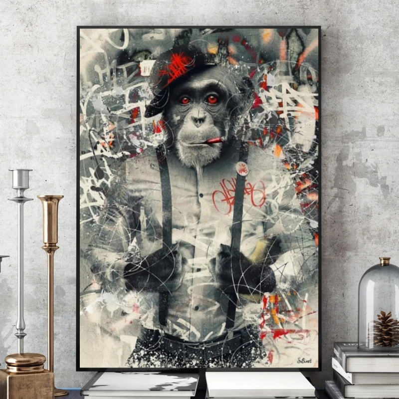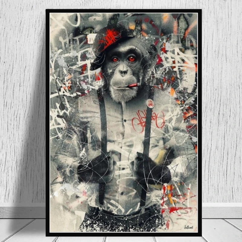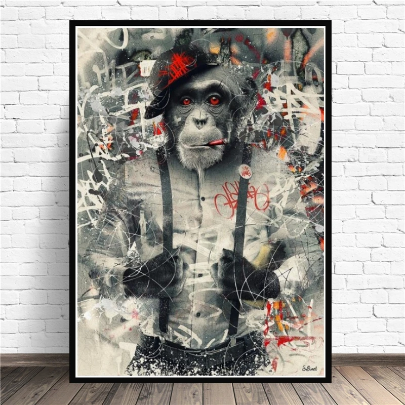 Забавный курение обезьяна в костюм из плотной ткани художественные плакаты и принты граффити Живопись Холст Картина на холсте настенные панно для декора комнаты