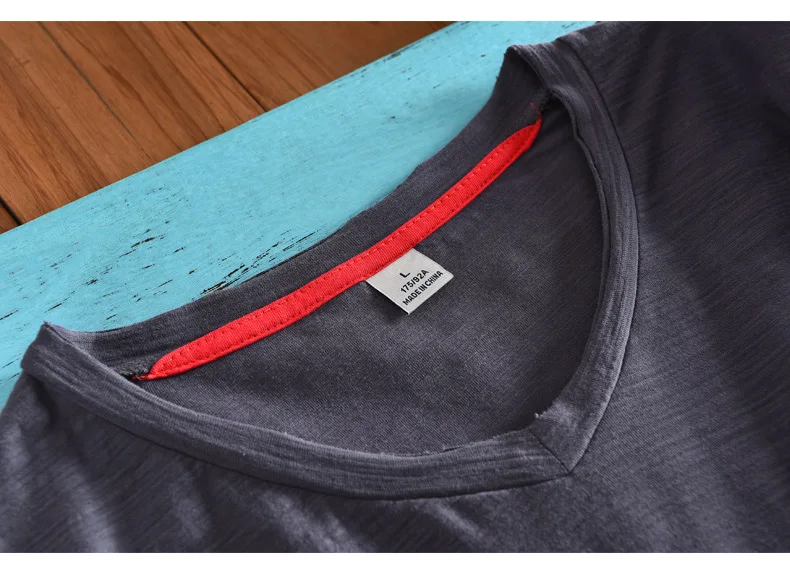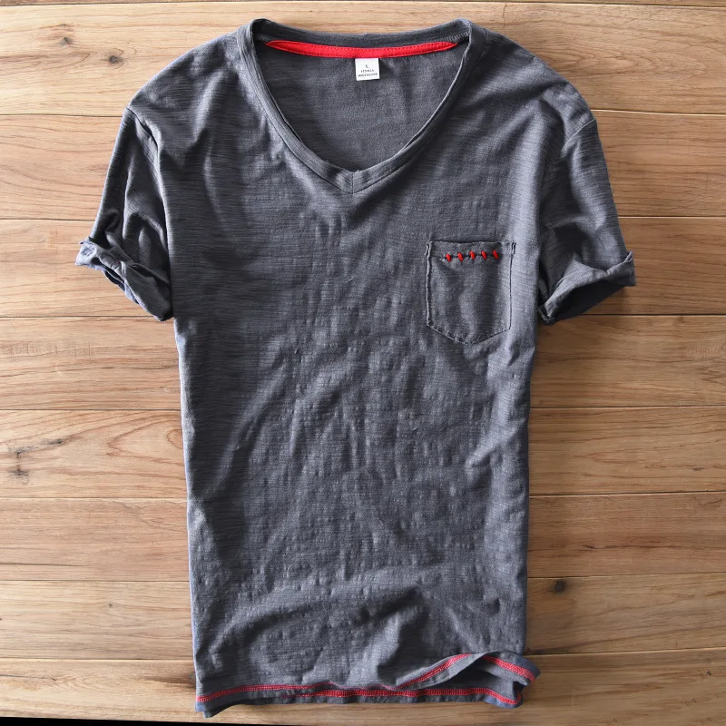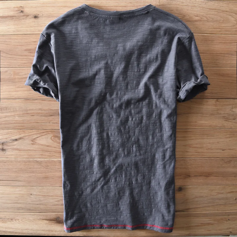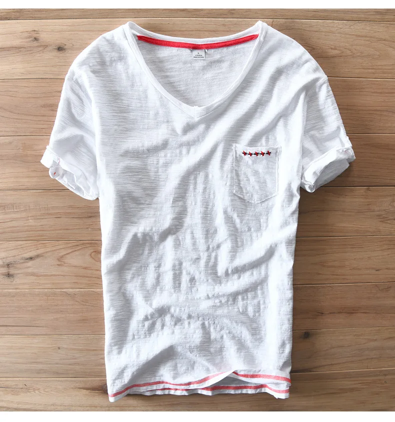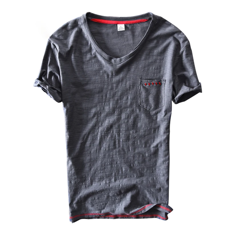 Футболка мужская из дышащего хлопка, брендовая Однотонная рубашка с коротким рукавом и V-образным вырезом, мягкая сорочка из хлопка, лето