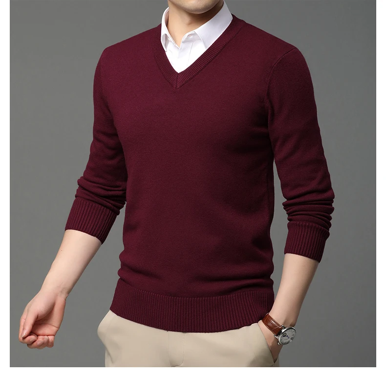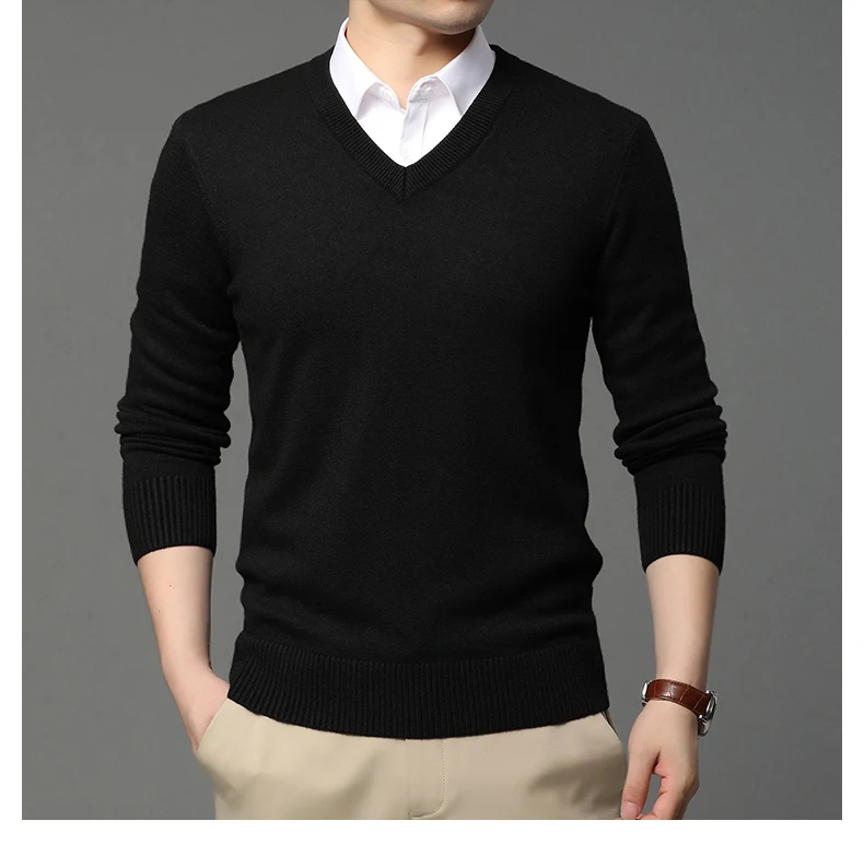 Мужской шерстяной вязаный пуловер, Черный Повседневный джемпер с V-образным вырезом для осени и зимы, 2021