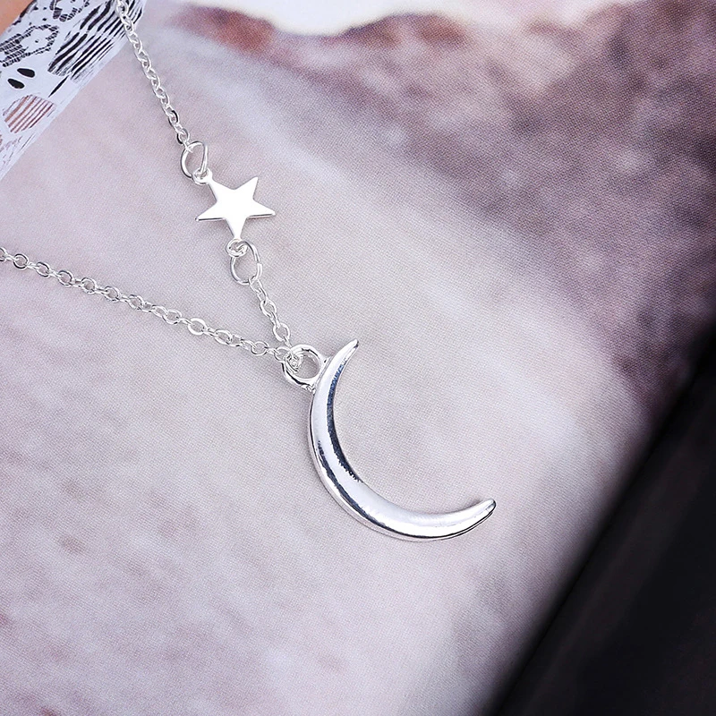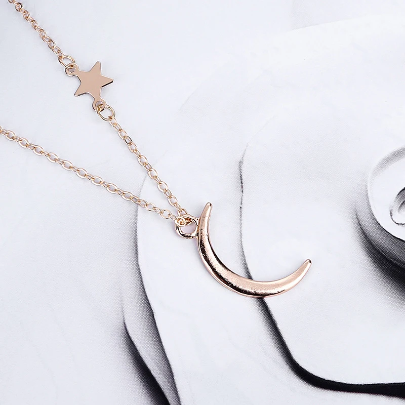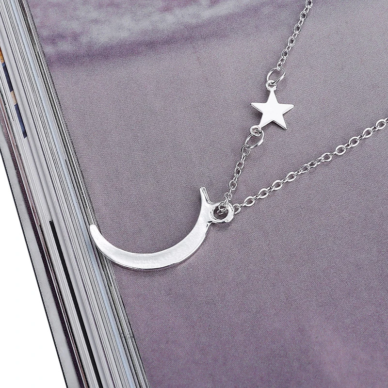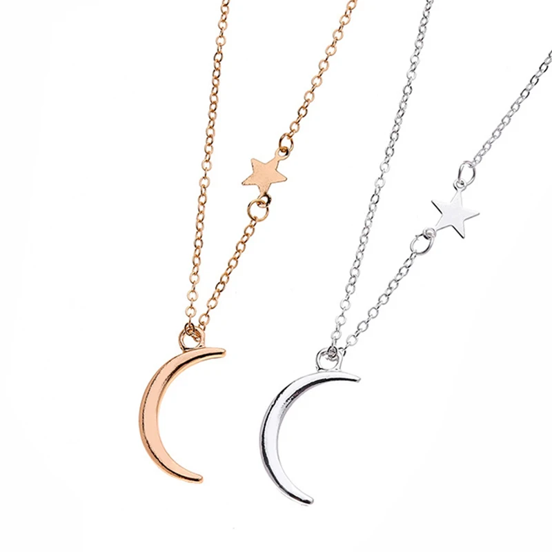Модная простая металлическая цепочка со звездами и Полумесяцами, Женская золотистая и серебристая цепочка до ключиц, очаровательные ювелирные изделия для свадебной вечеринки