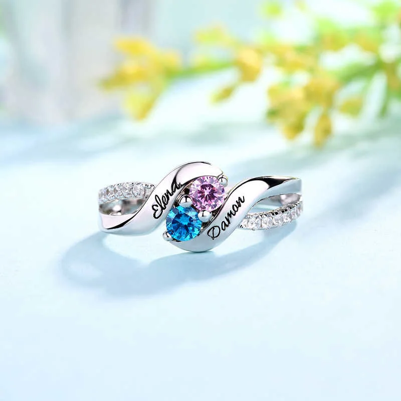Горячая Распродажа 925 пробы серебро персонализированные камнях Обручение кольца для нее гравировка имени кольцо для влюбленных
