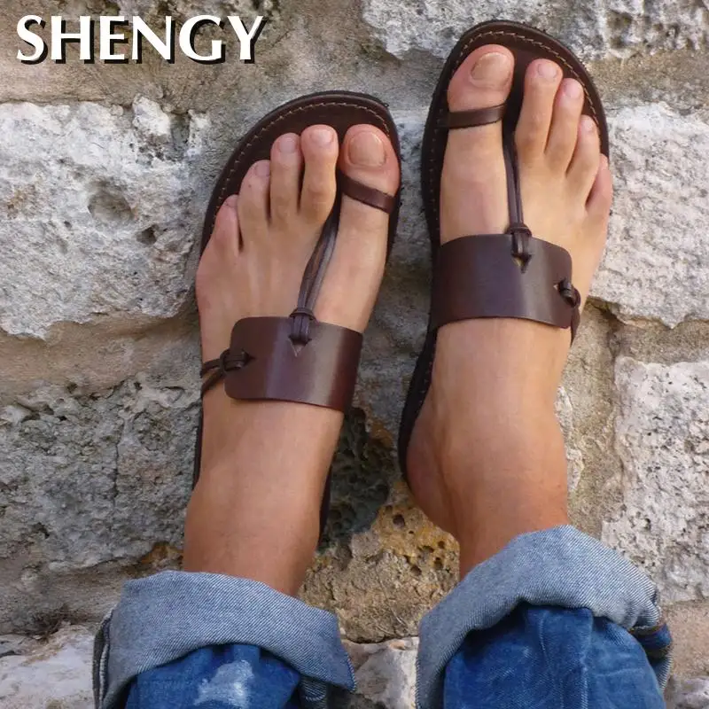 Сандалии мужские, летние, пляжные, повседневные, нейтральные, гладиаторские плоские сандалии, с открытым носком, большого размера 48