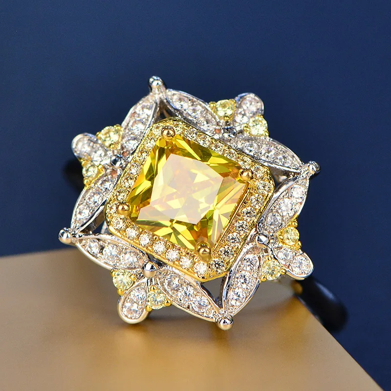 Роскошное серебряное кольцо с желтым фианитом, кольца Стразы с микрозакрепкой, белые кольца для женщин, нежные ювелирные изделия для свадебной вечеринки, подарок H4M373