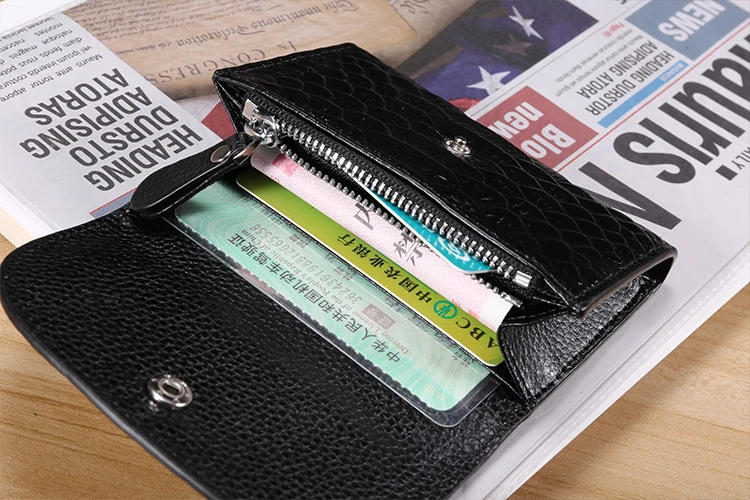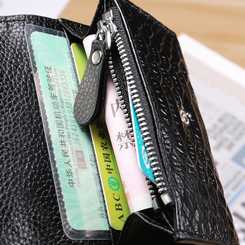 Кошелек мужской, короткий, из натуральной кожи, с отделением для монет и карт, с карманом на молнии