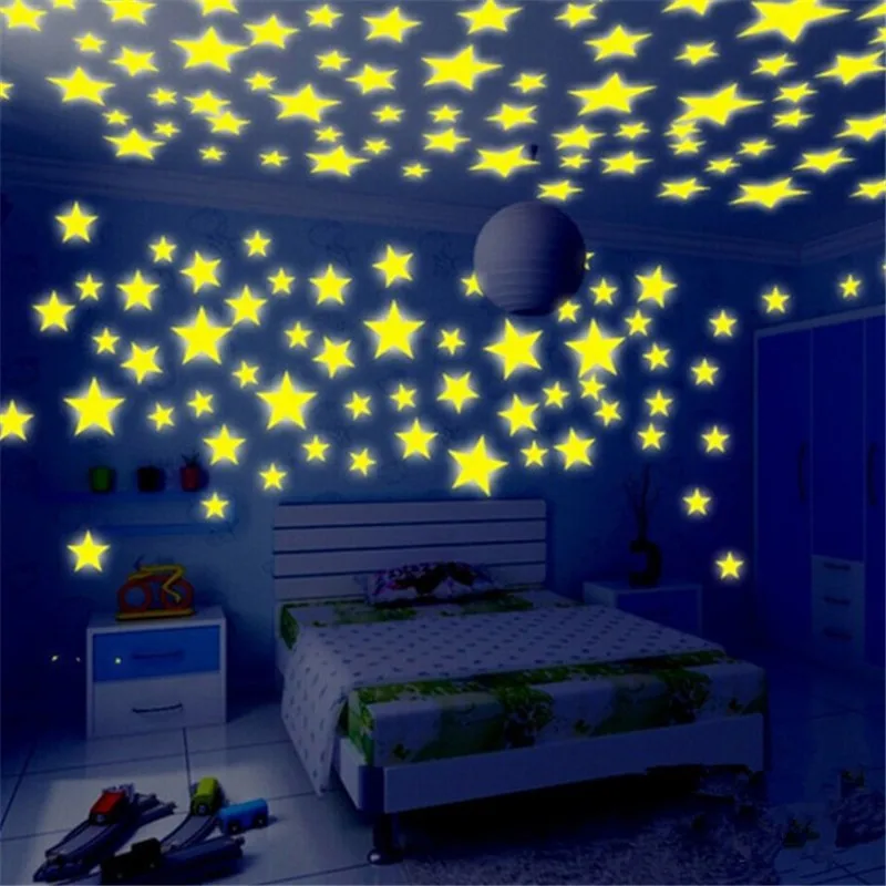 100 шт./лот, светящиеся в темноте настенные стикеры со звездами для маленьких детей, декор для спальни, светящиеся флуоресцентные украшения для дома, аксессуары