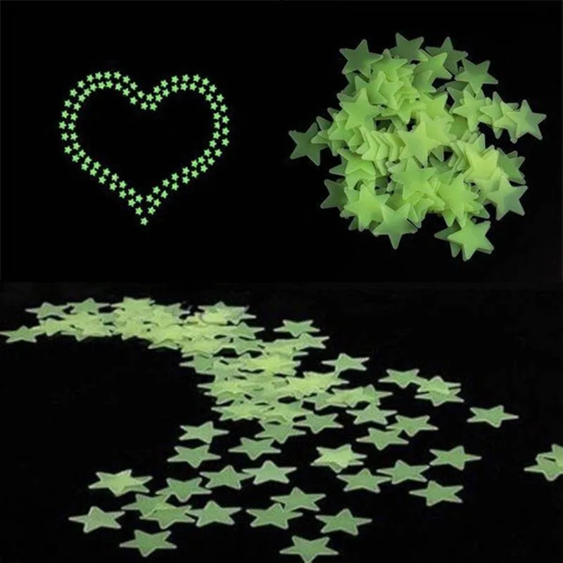 100 шт.лот Светящиеся в темноте наклейки на стену украшение для детской спальни светящиеся флуоресцентные аксессуары для украшения дома