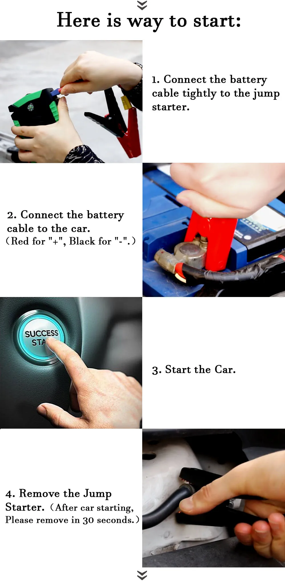 1. Для вашей безопасности, пожалуйста, не разбирайте стартер скачка. После демонтажа самостоятельно, мы не будем обслуживать любые возникшие проблемы.