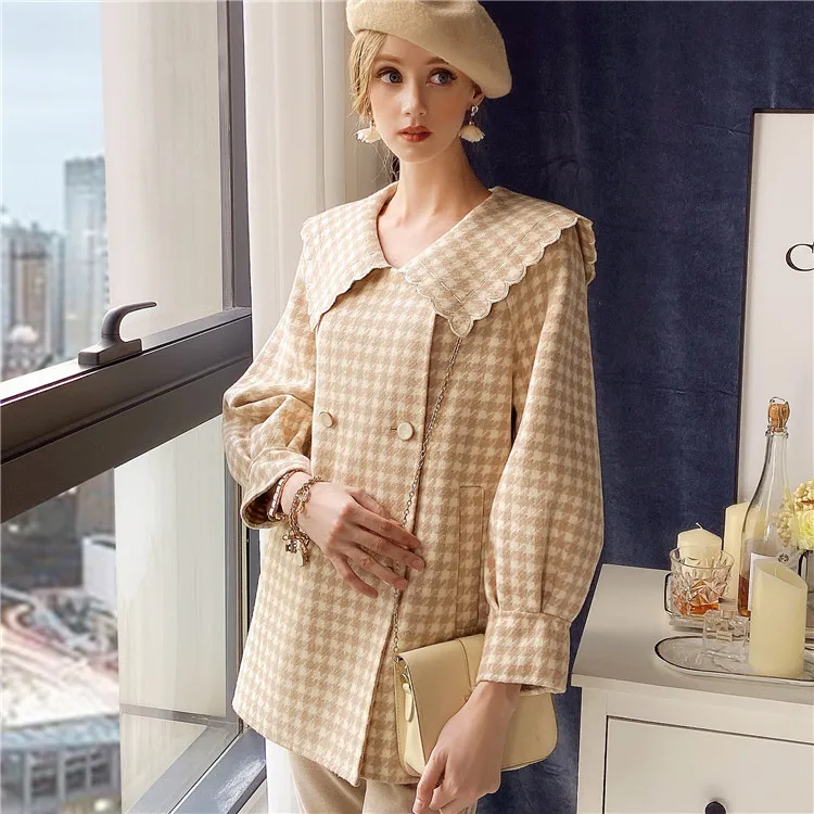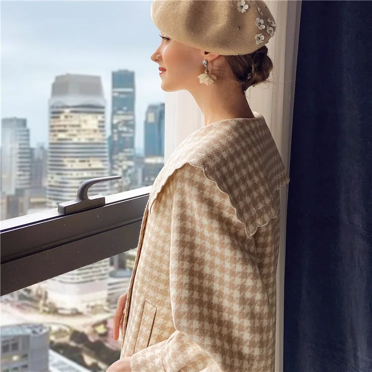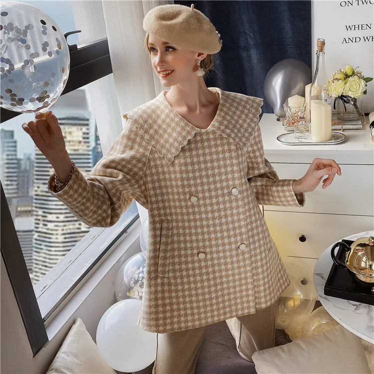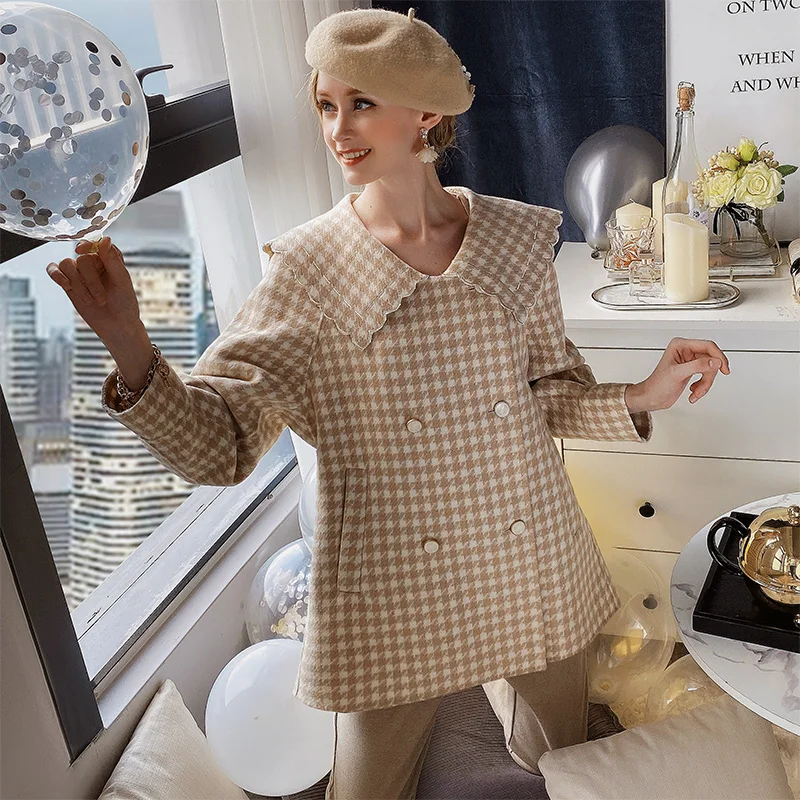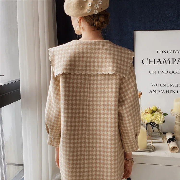 Dabuwawa модное клетчатое шерстяное пальто для женщин зимнее длинное пальто с поясом из твида с карманами осеннее теплое пальто для женщин DT1DLN026
