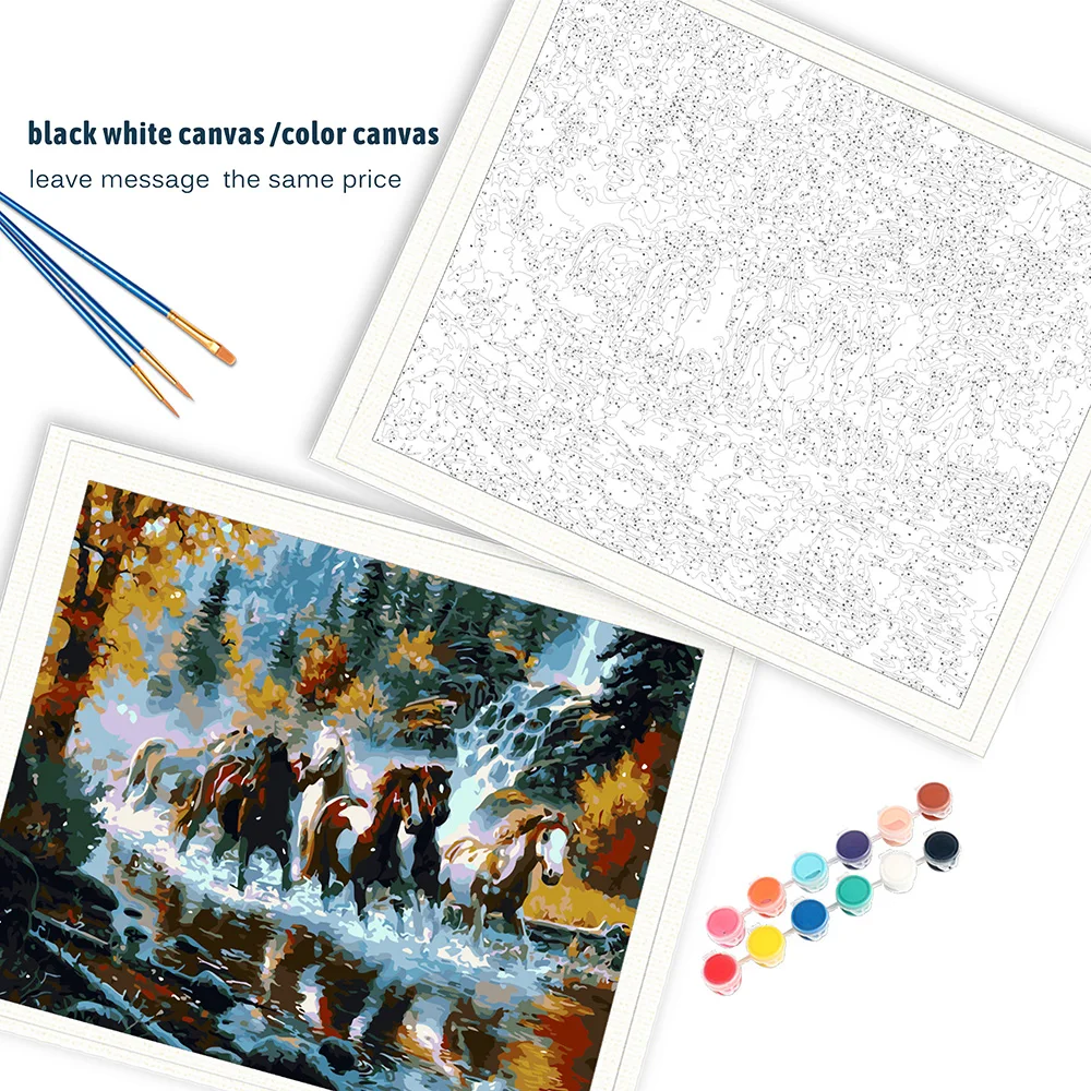 RUOPOTY река бегущая лошадь животные Diy Цифровая живопись по номер...