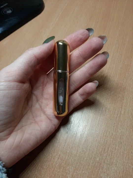 Очень хорошая вещь. У меня давно потерялся распылитель на флаконе духов и ни один с других флаконов не подошёл, а этим закачала и теперь могу его носить с собой. Брала на 5мл вот такой он -чуть меньше тюбика помады. Заказывала несколько товаров с быстрой доставкой, всё пришло за 12 дней