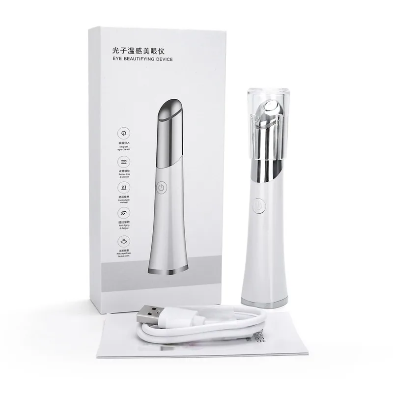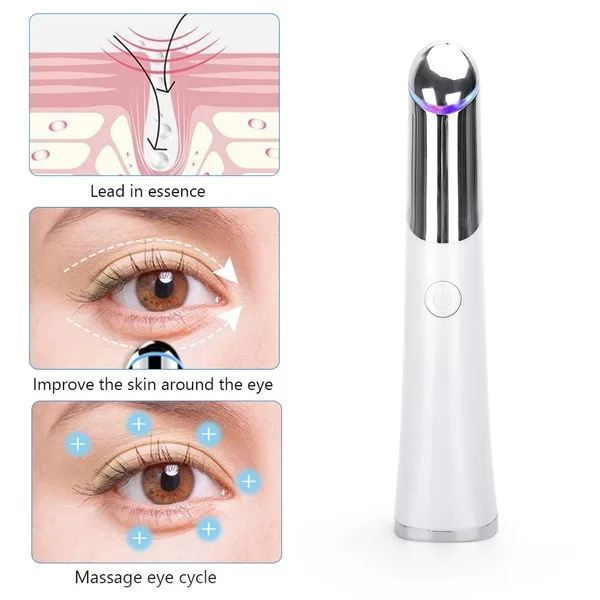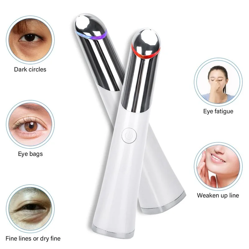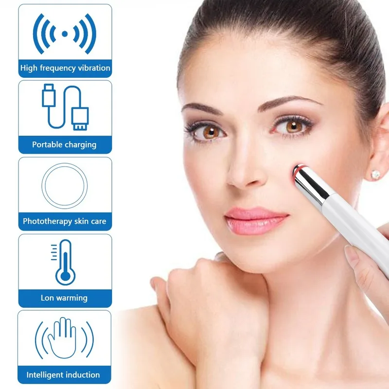 Электрический массажер для глаз в виде ручки Фотон Температура чувствительный устройство для массажа глаз против морщин, избавление от мешков и кругов под глазами! Убирает темные круги под глазами, Вибрационный массажер