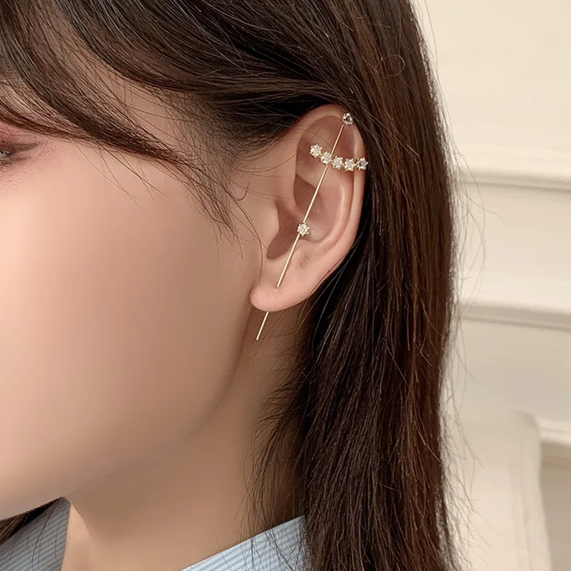 1 шт. в богемном стиле Свадебные уха обруч на гусеничном ходу крюк серьги, серьги-гвоздики с кристаллами для женщин; Простые циркония альпинист вечерние серьги