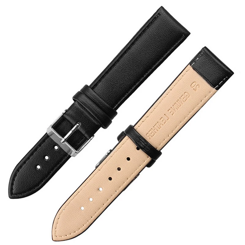 Ремешок для часов из натуральной кожи, со стальной пряжкой, 10, 12, 14, 16, 18, 19, 20, 22, 24 мм