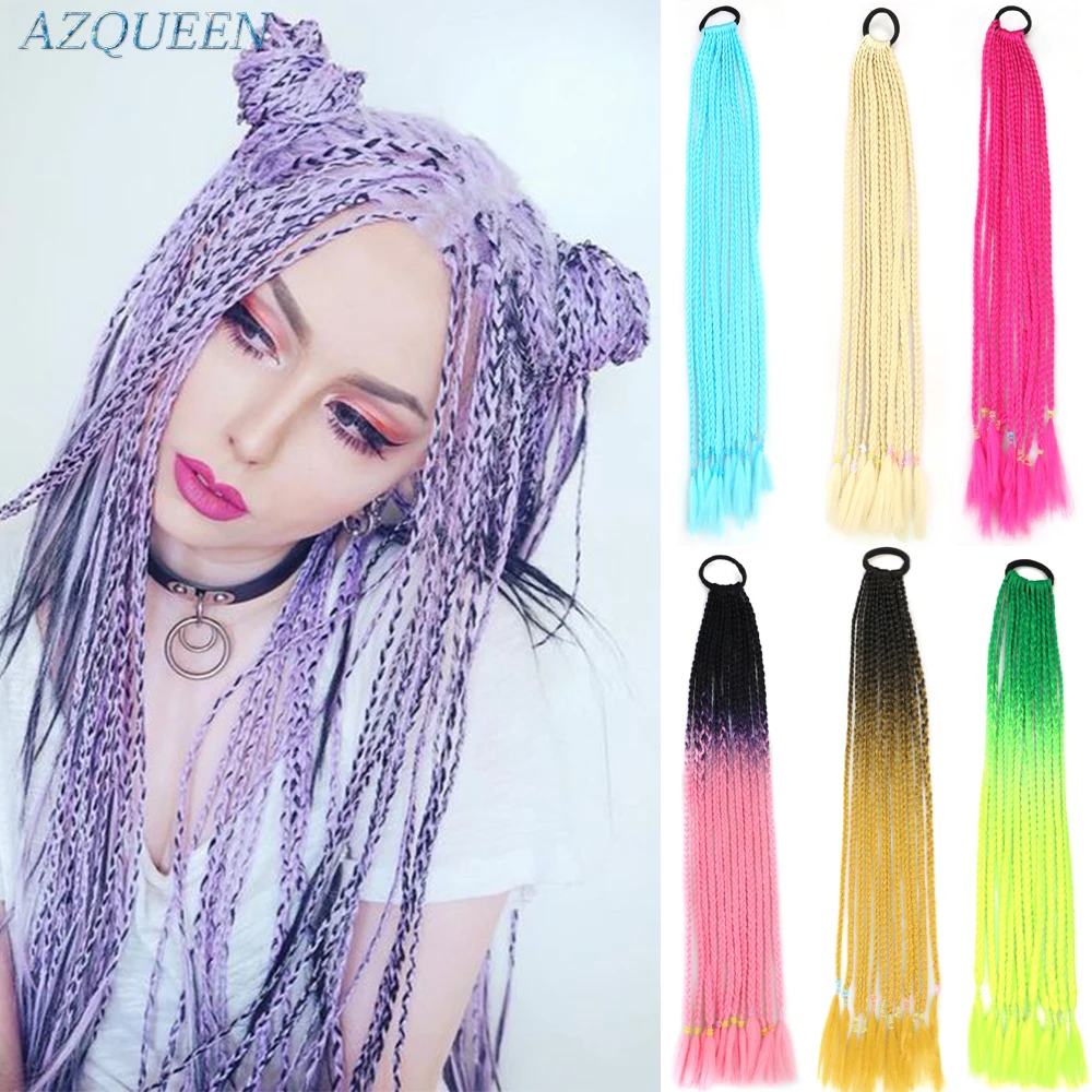 AZQUEEN Синтетический хвост шиньон с резинкой для волос шиньон 24 дюйма вязание крючком косы волос Радуга