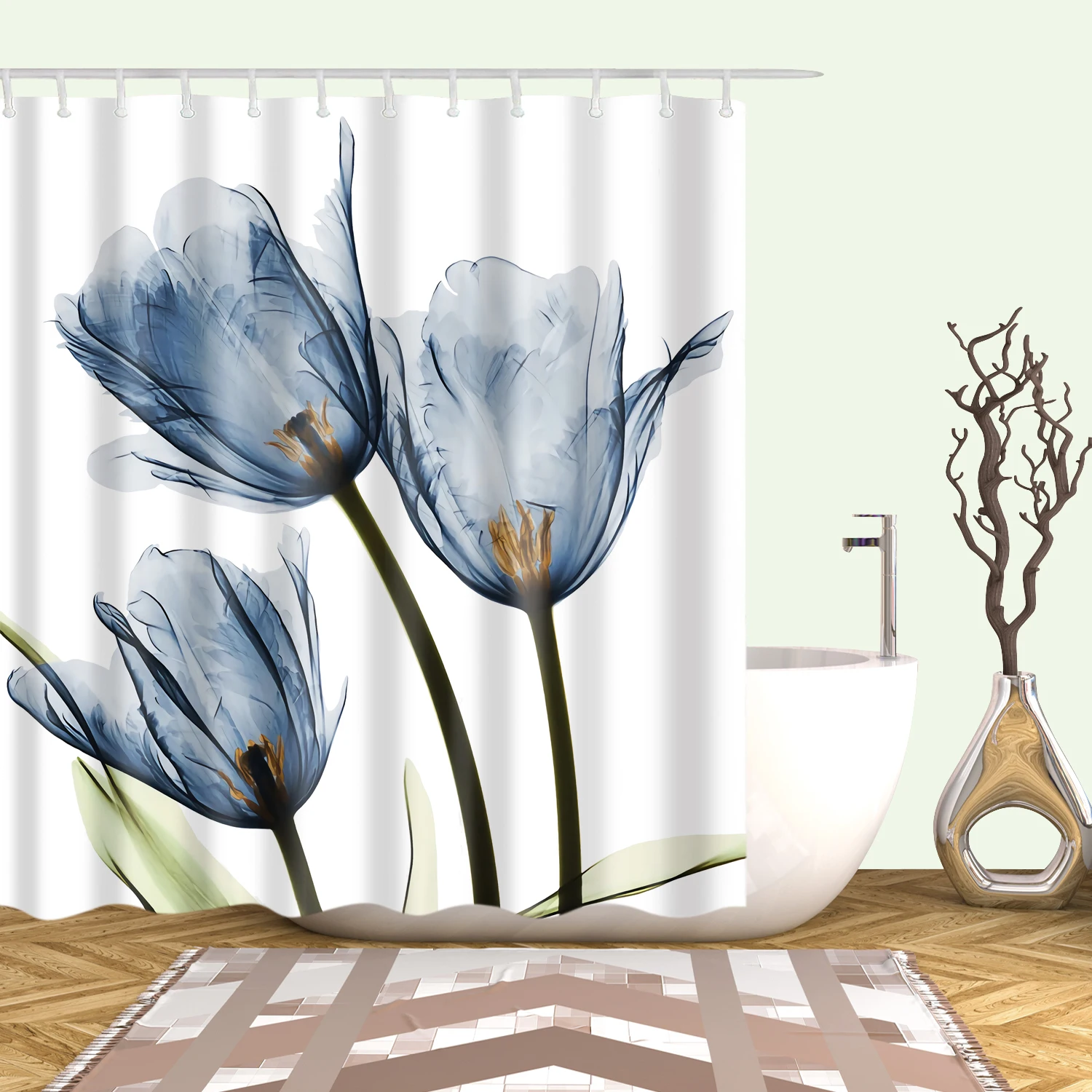 Занавеска для душа из водонепроницаемого полиэстера с цветами, живо...