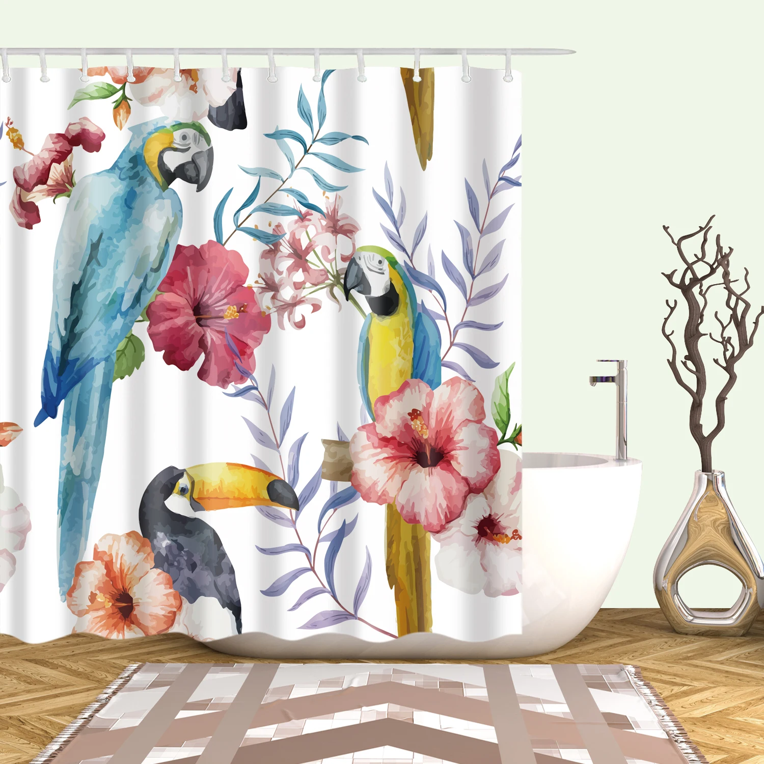 Тропические занавески для душа с изображением растений, s, цветов, ...
