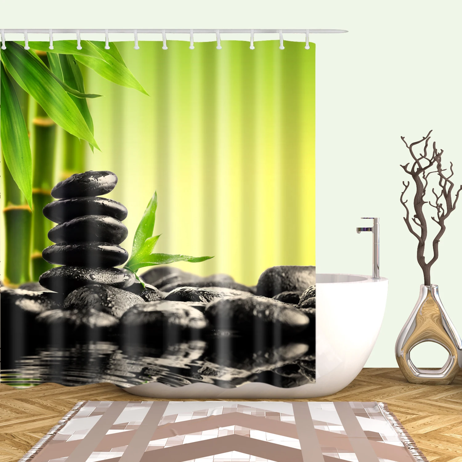 Водонепроницаемая занавеска для душа с крючками, зеленая сцена, зан...