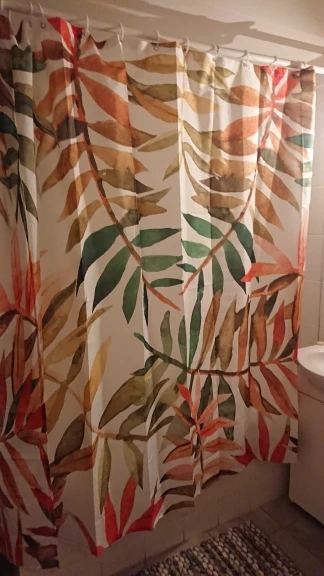 Декоративная шторка для душа из ткани с изображением листьев и цвет...