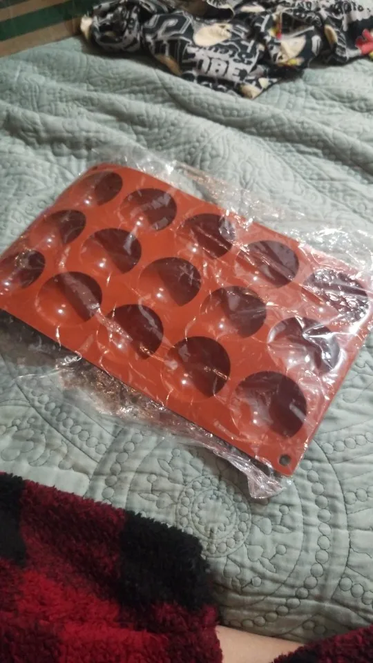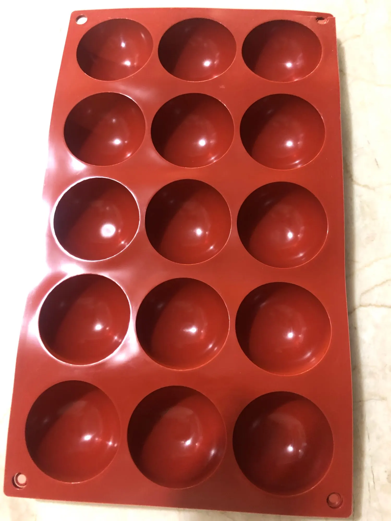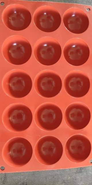 Очень тонкий силикон, не держит форму(( шоколадные сферы получаются приплюснутыми на дне. Жаль, брала именно для работы с шоколадом и муссовыми пирожными. Доставка очеь быстрая.