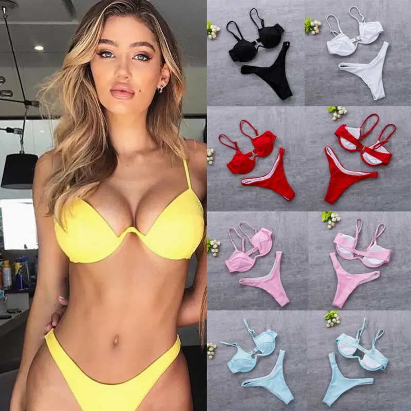 Однотонное сексуальное бикини, лето 2019, женский купальник, Бюстга...