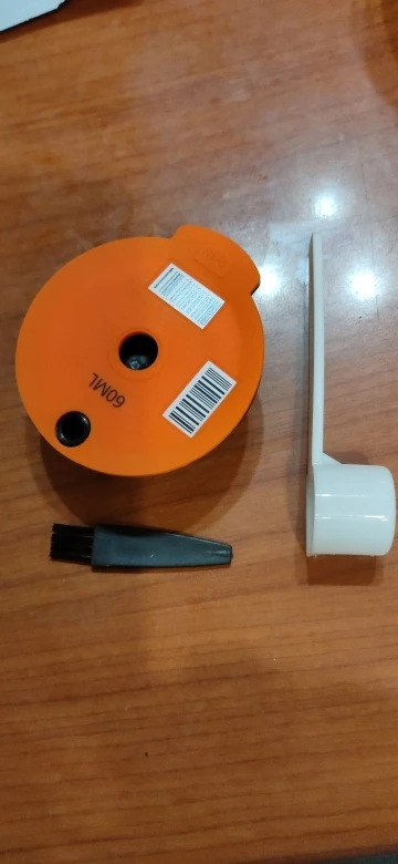 Пришло в полной комплектации (капсула, мерная ложечка, щеточка). Качество хорошее. Попробовала в действии, ничего не течёт. Посмотрим на сколько хватит. Продавцу спасибо.