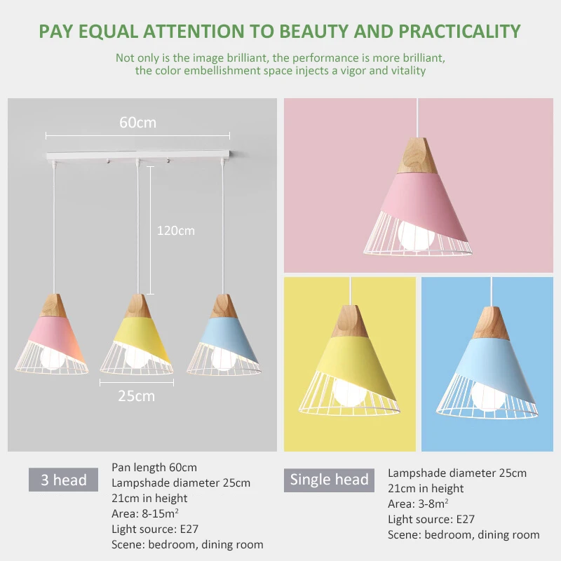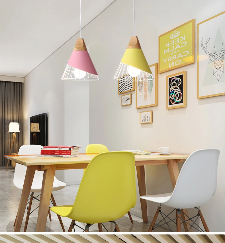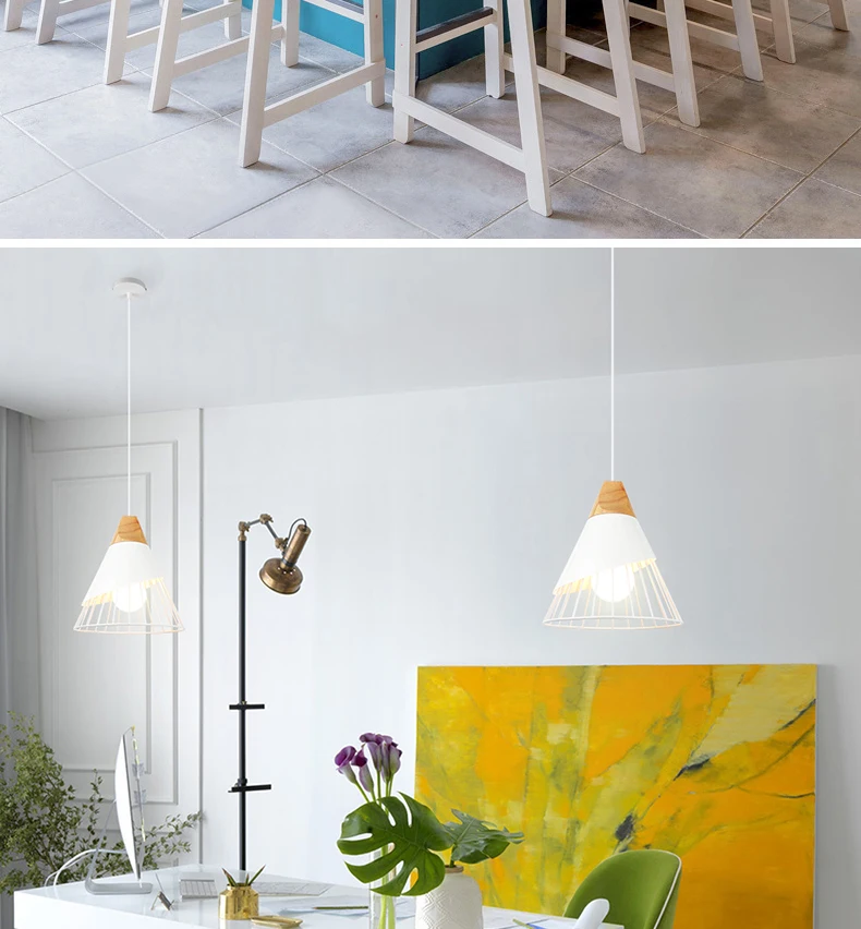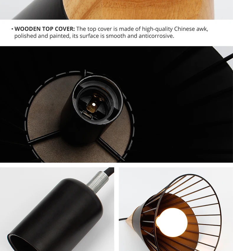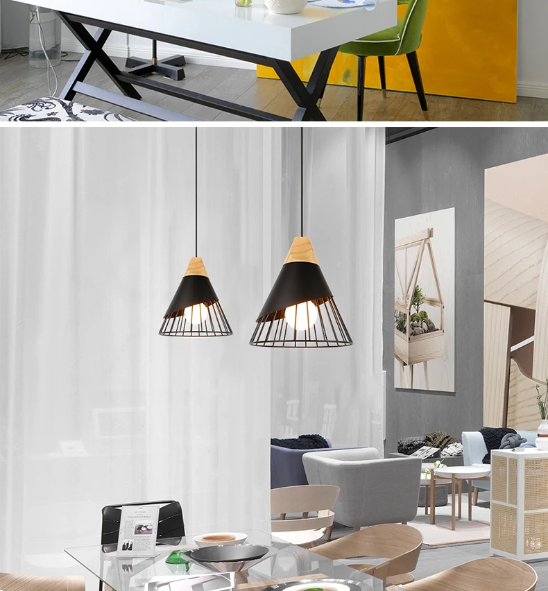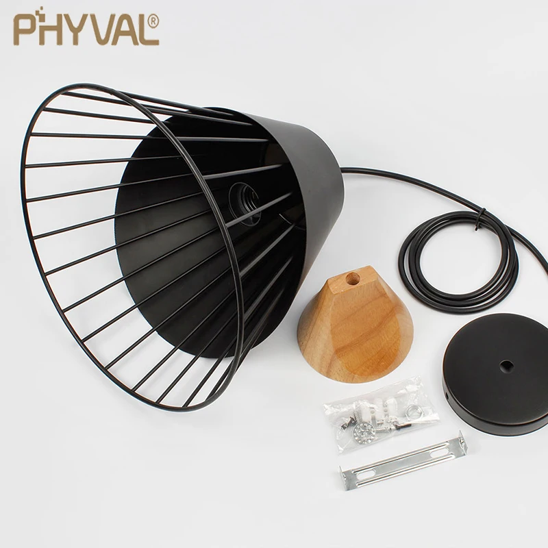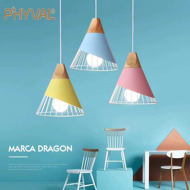 Деревянная Подвесная лампа PHYVAL E27 в скандинавском стиле, алюминиевая лампа с абажуром для спальни