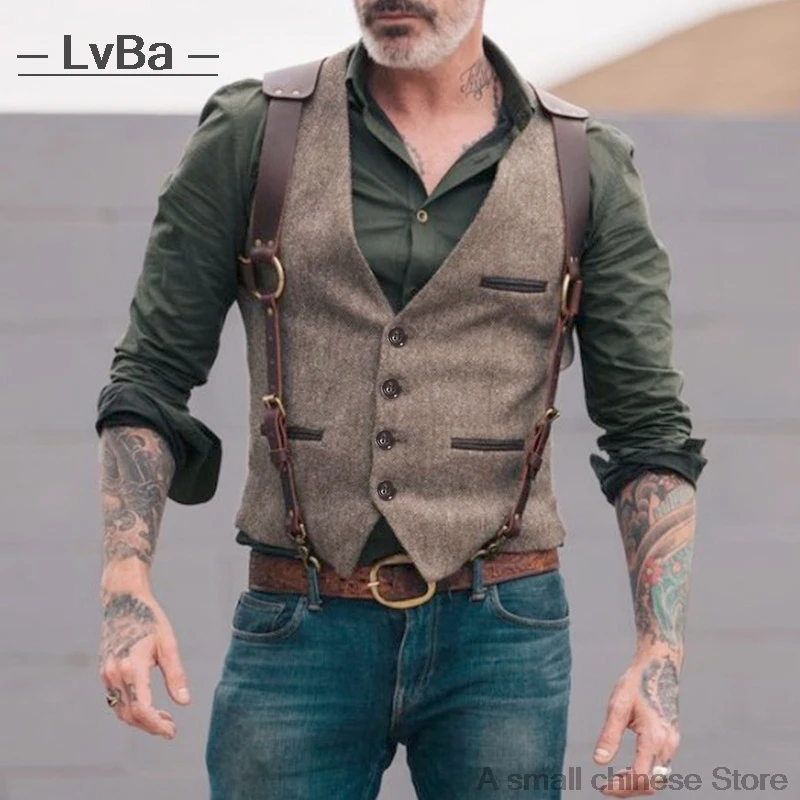 Шерстяной твидовый мужской костюм, жилеты в викторианском стиле, му...