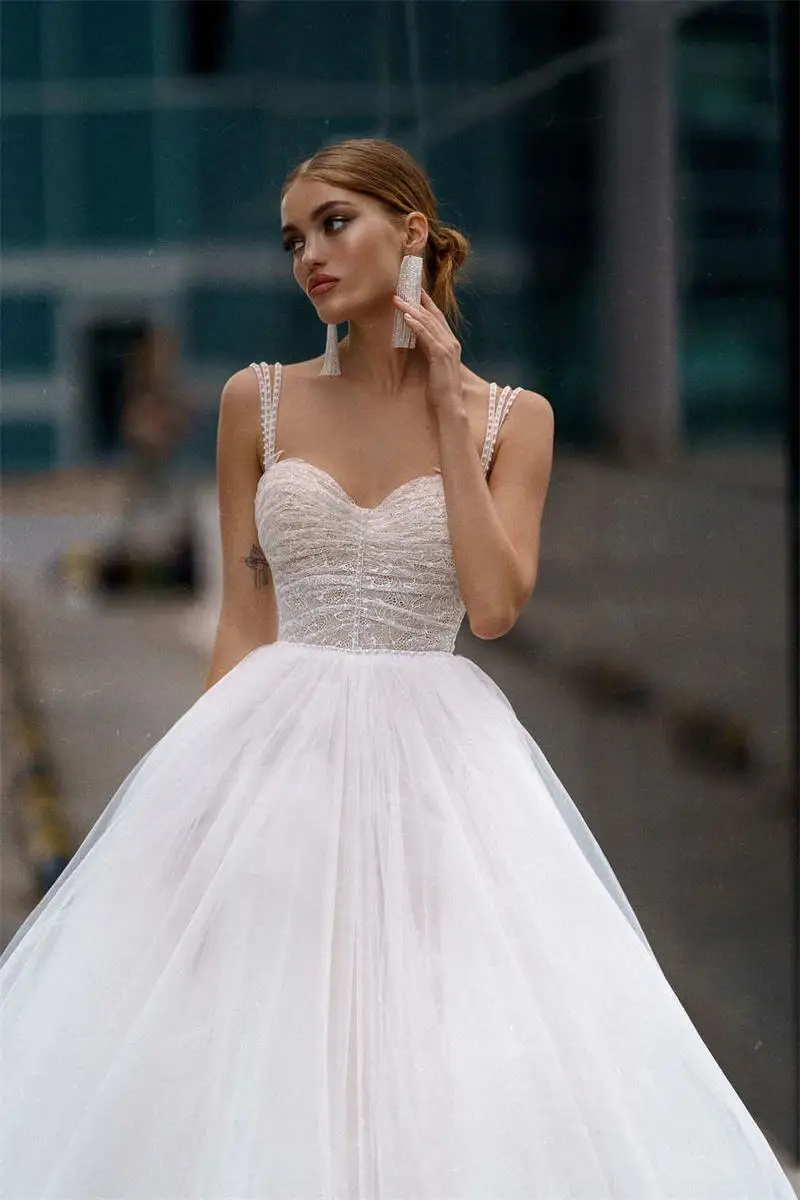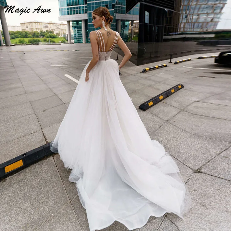 Женское кружевное свадебное платье Magic Awn, мягкое Тюлевое платье-трапеция на тонких бретельках в стиле бохо, платье для свадебной вечеринки, пляжное платье невесты, 2021